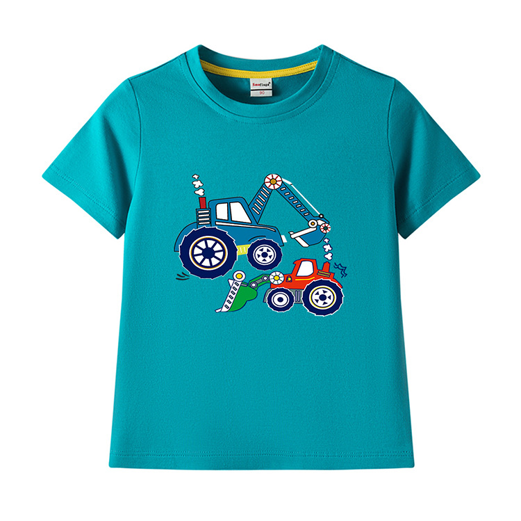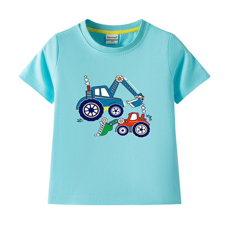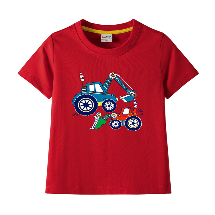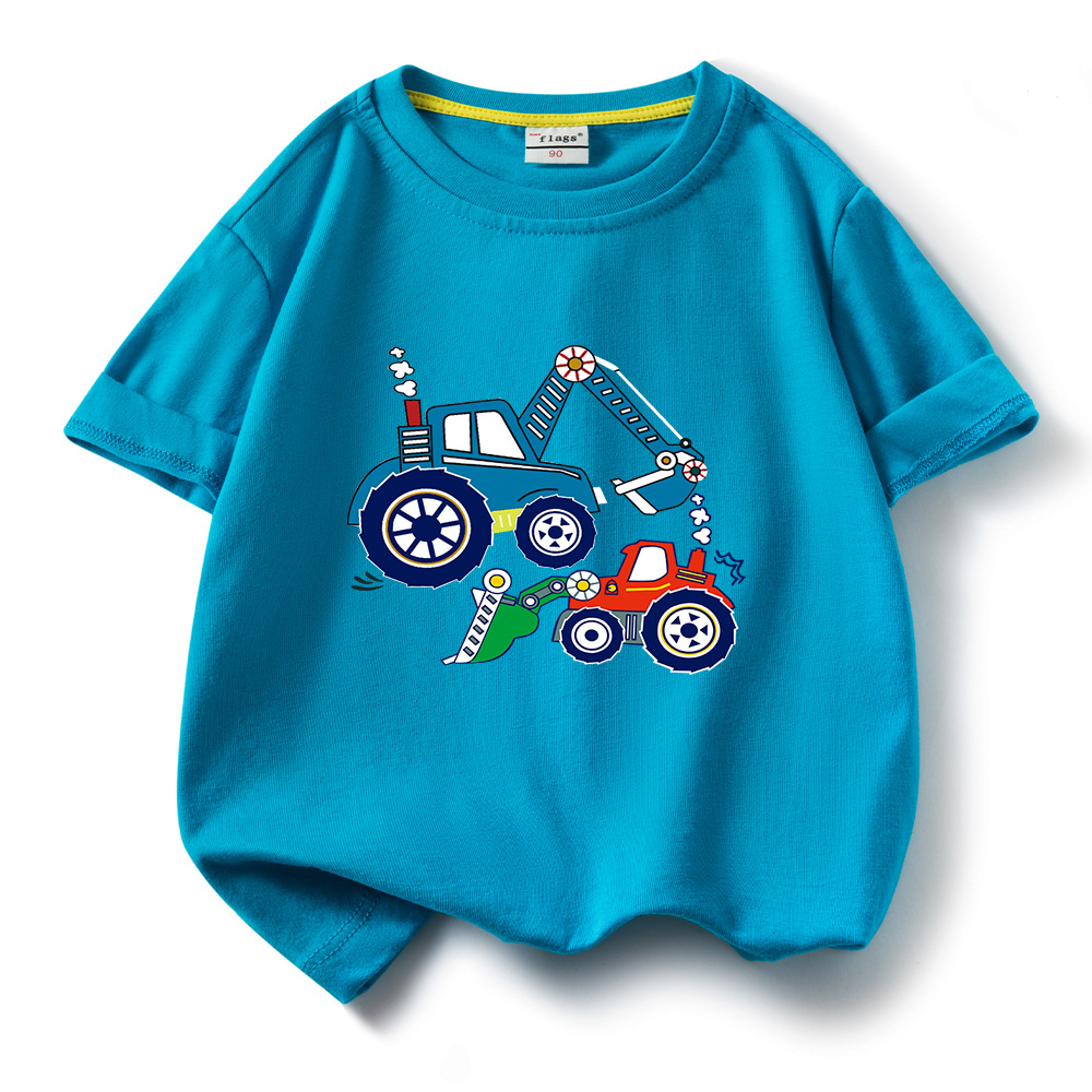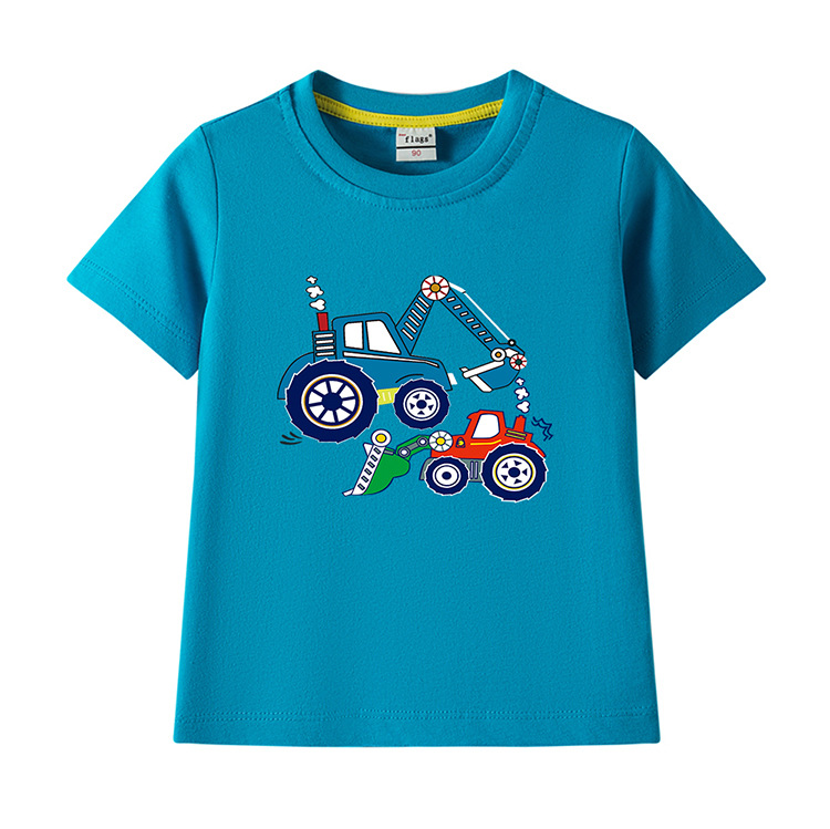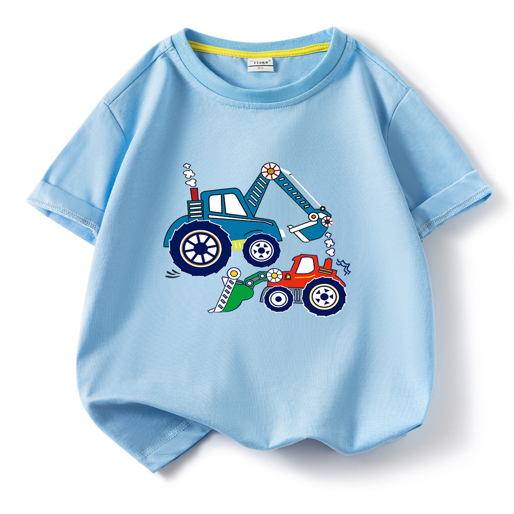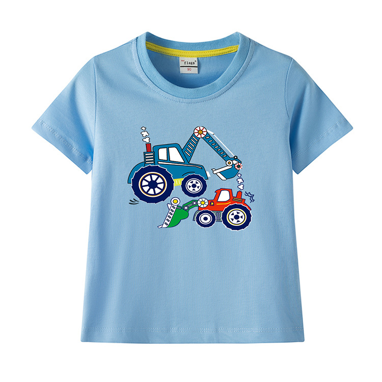 파는 만화 인쇄 아동복 면 라운드 넥 반팔 티셔츠 아동면 티셔츠 공장 재고 도매