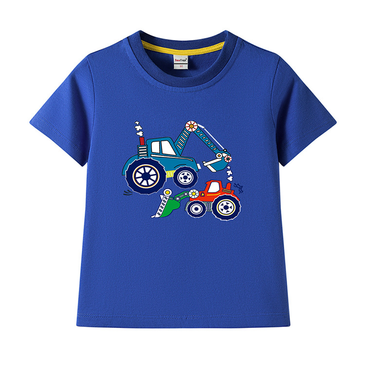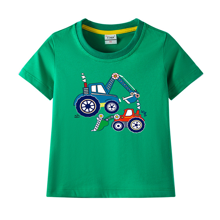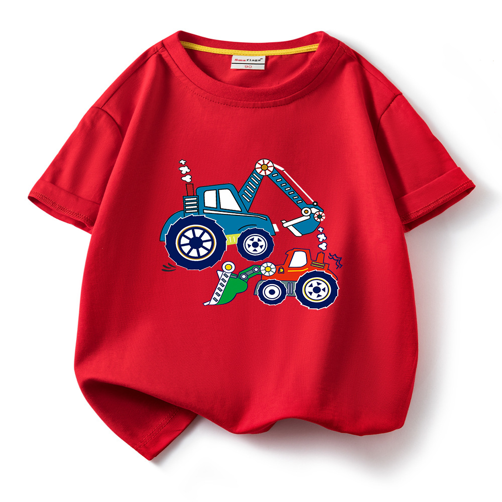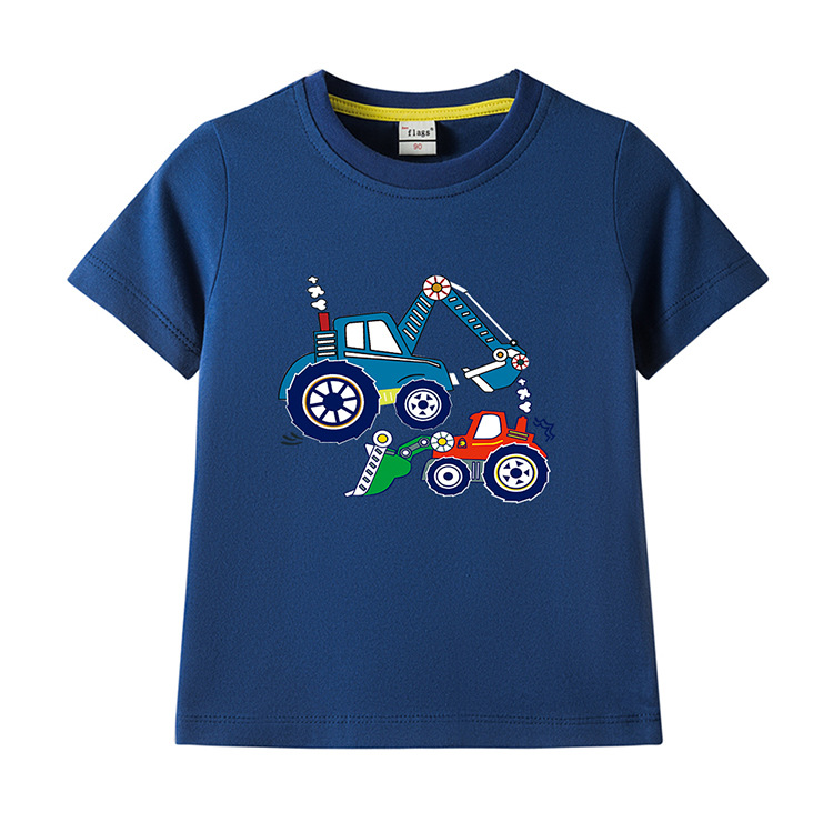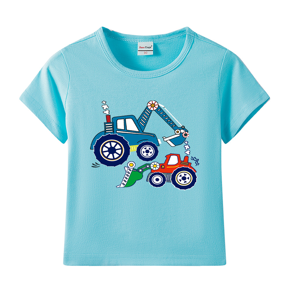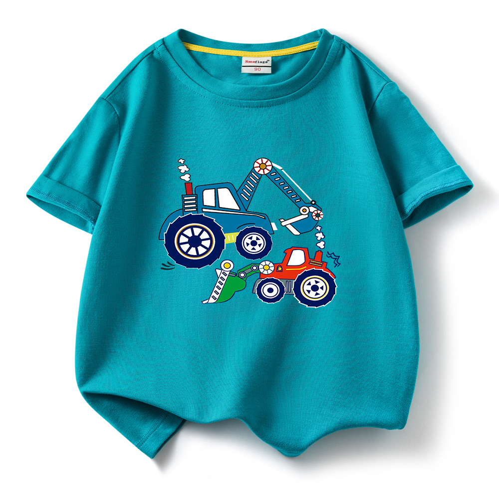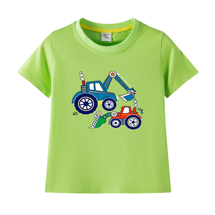 파는 만화 인쇄 아동복 면 라운드 넥 반팔 티셔츠 아동면 티셔츠 공장 재고 도매