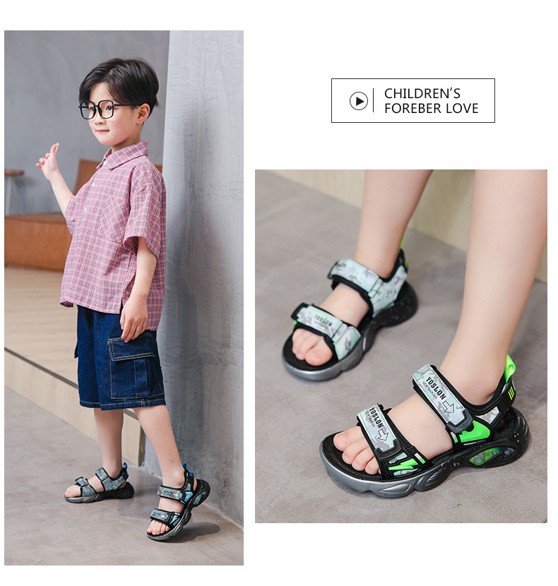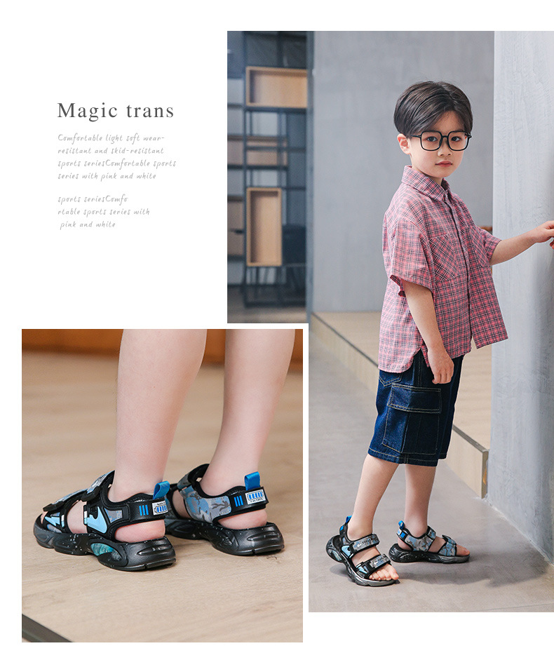 2025 새로운 여름 스타일 중대형 어린이 소년 샌들 벨크로 부드러운 바닥 패션 캐주얼 어린 소년 해변 신발 도매스토어 가기