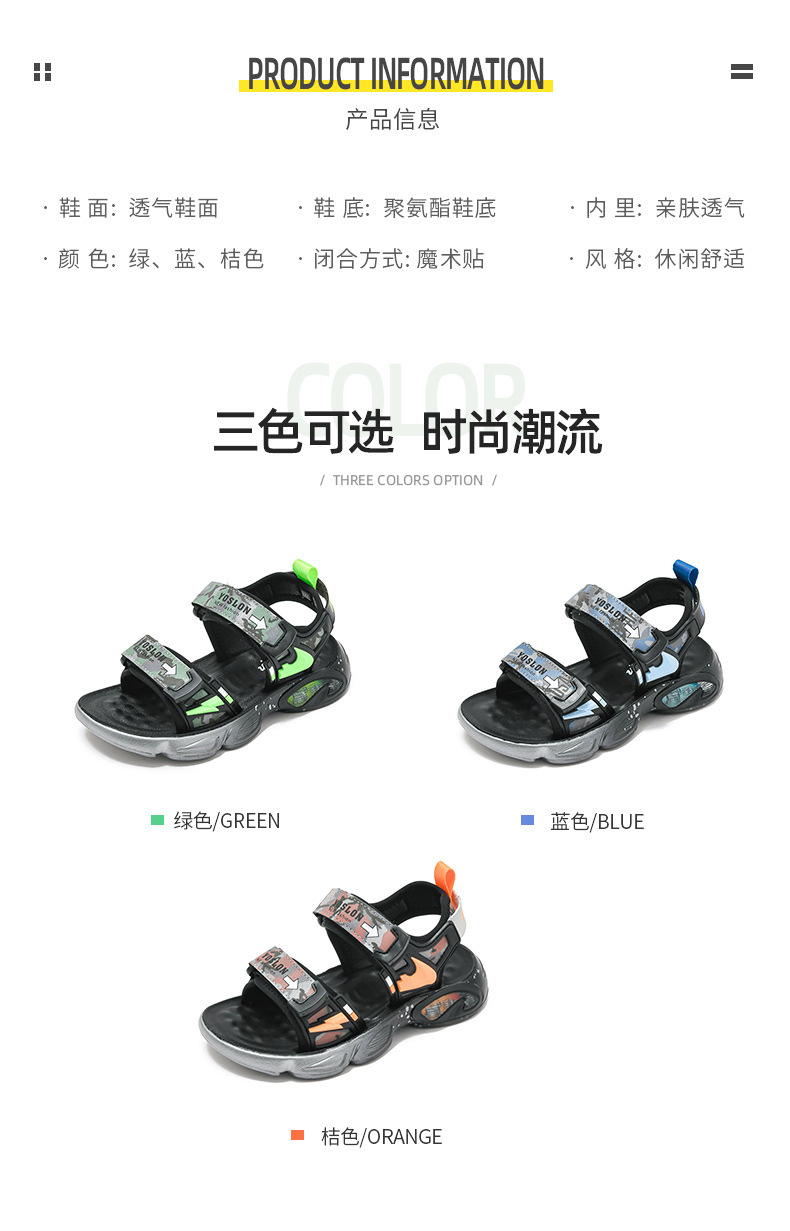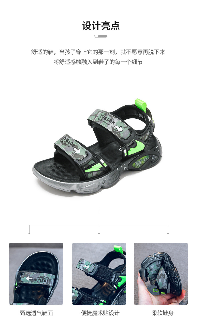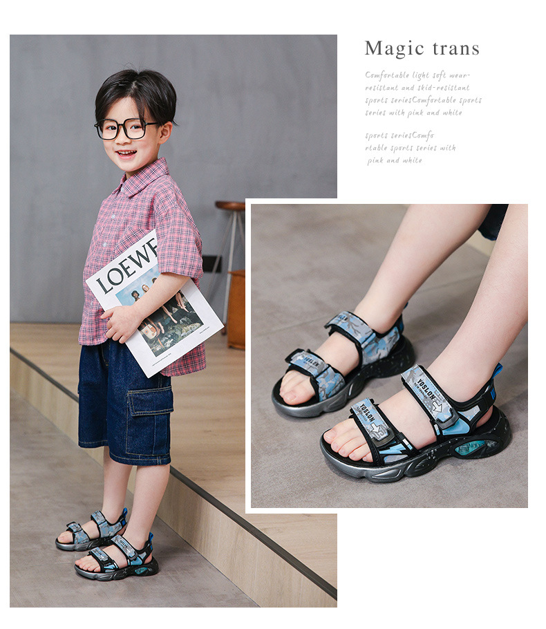 2025 새로운 여름 스타일 중대형 어린이 소년 샌들 벨크로 부드러운 바닥 패션 캐주얼 어린 소년 해변 신발 도매