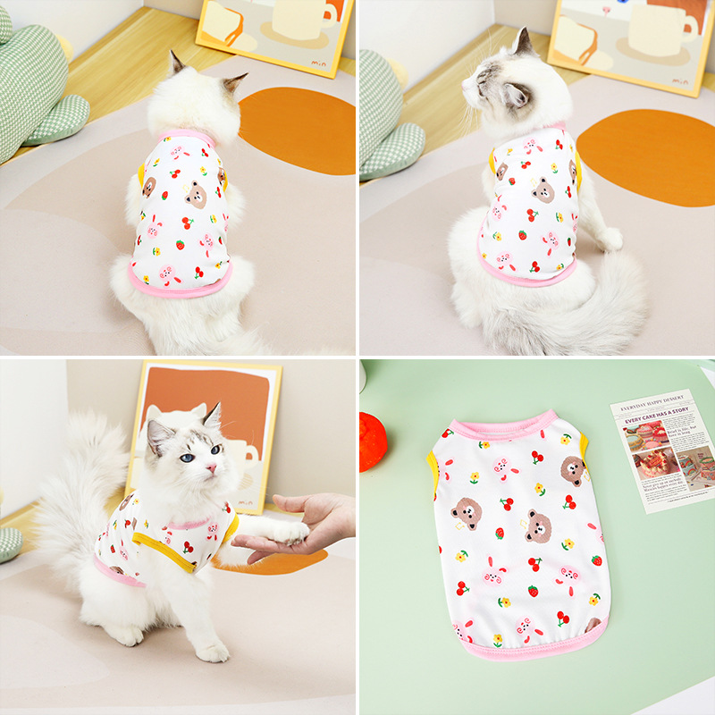 새로운 애완 동물 고양이 뚱뚱한 곰 조끼 봄과 여름 짧은 머리 고양이 긴 머리 고양이 의류 귀여운 고양이 옷스토어 가기