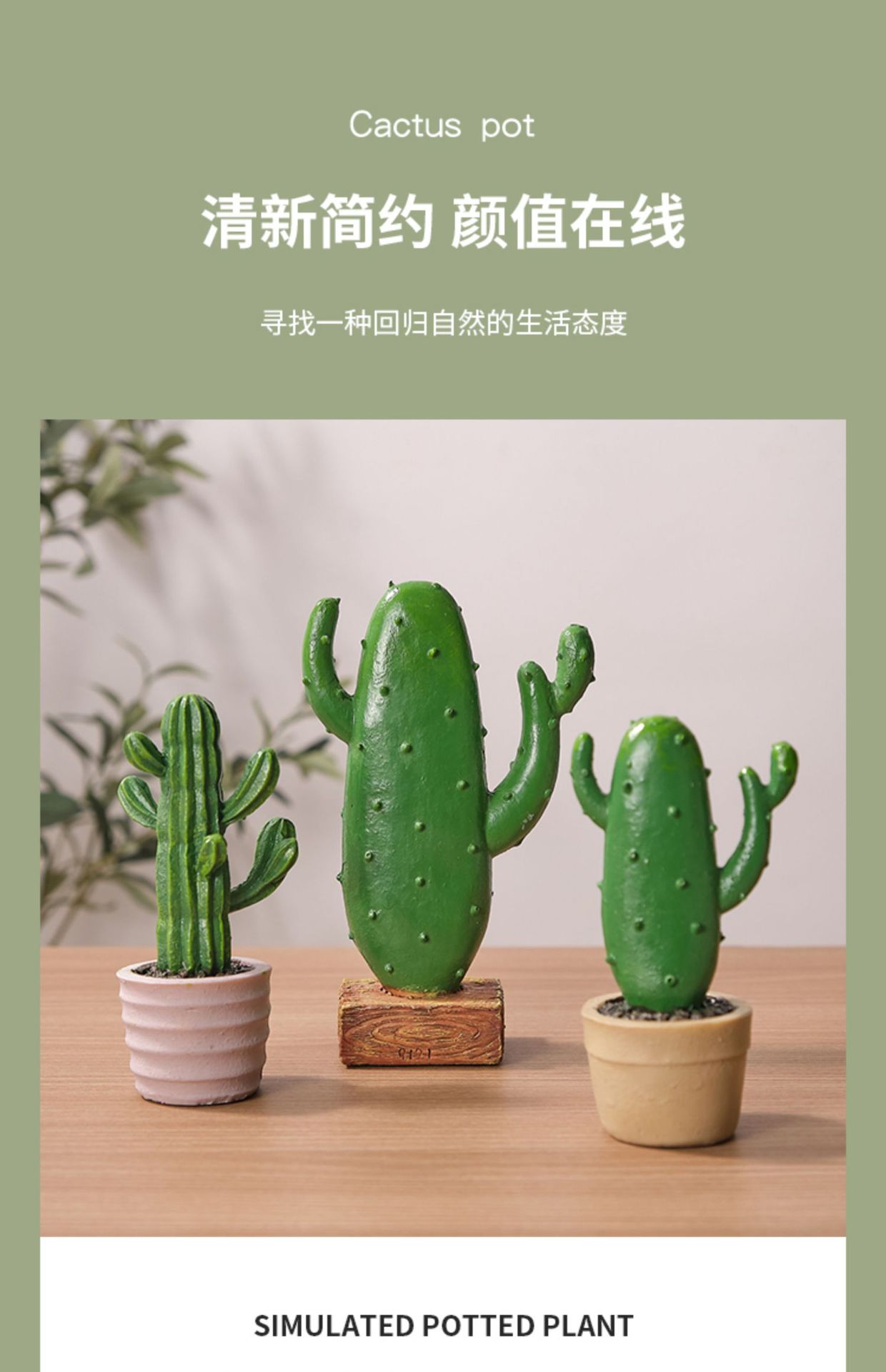 북유럽 스타일 창조적 인 수지 선인장 냄비 장식품 거실 침실 시뮬레이션 식물 가짜 녹색 식물 장식