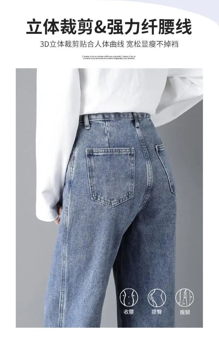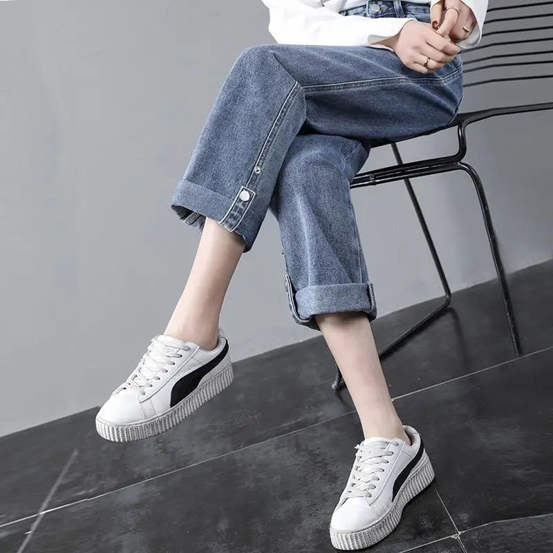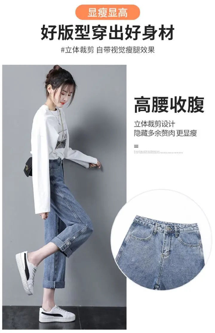2023 봄 하이 웨이스트 새 청바지 여성용 한국식 느슨한 착용하기 쉬운 캐주얼 발목 길이 바지 학생용 스트레이트 레그 팬츠스토어 가기