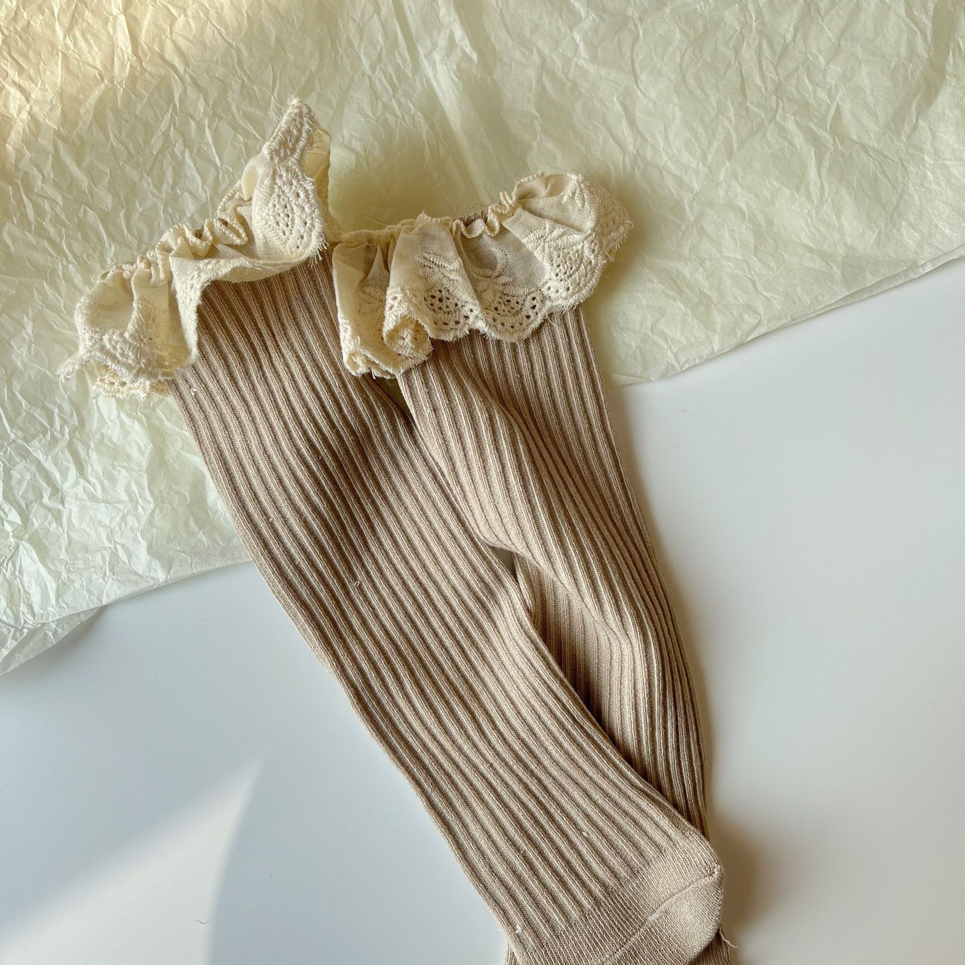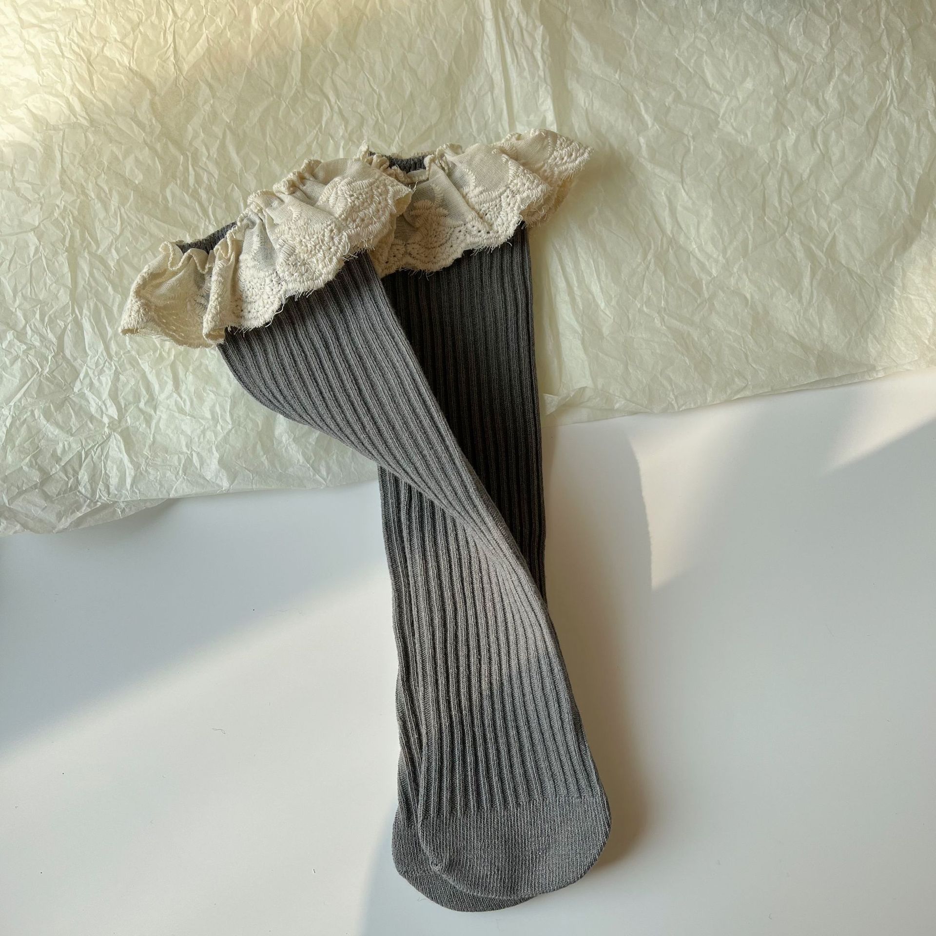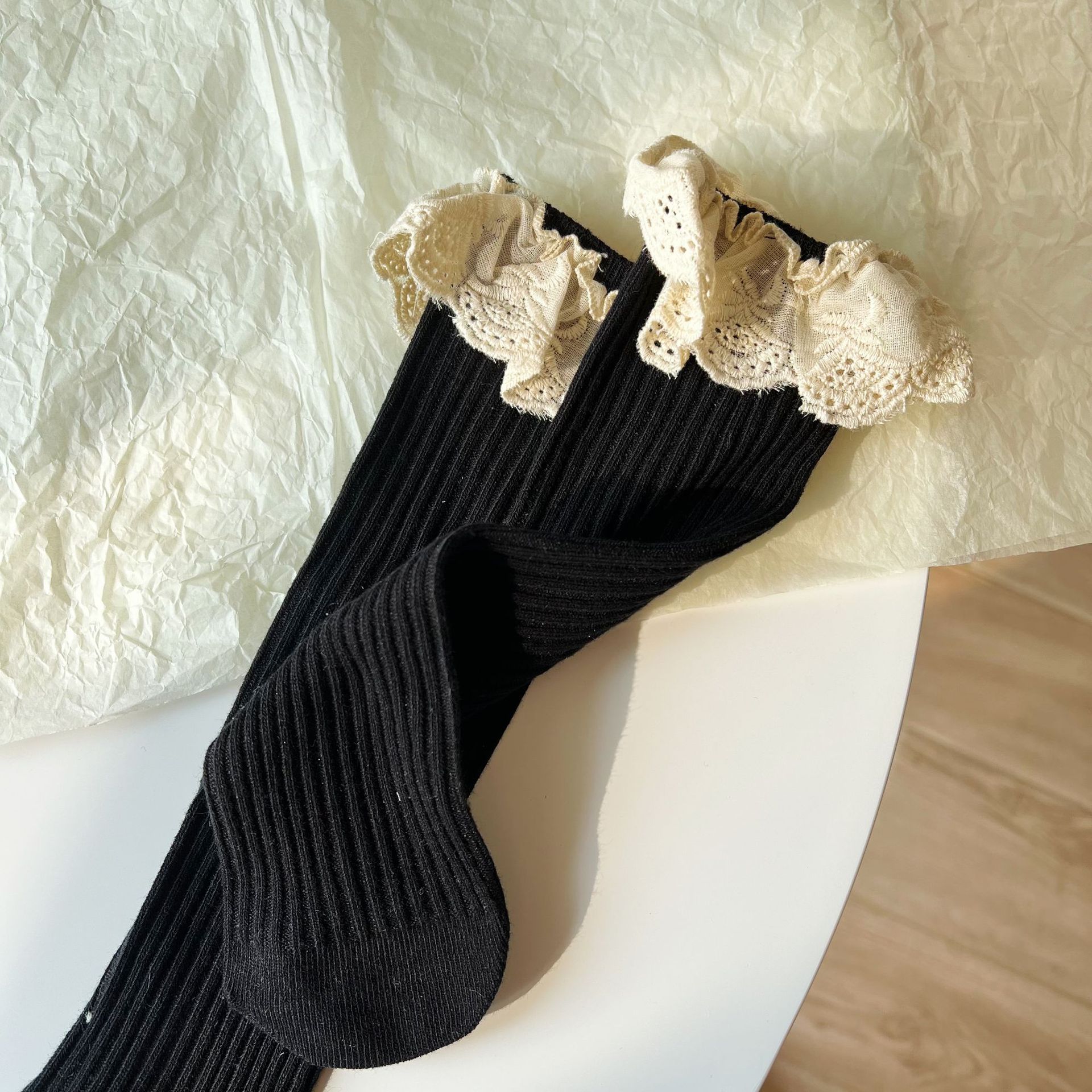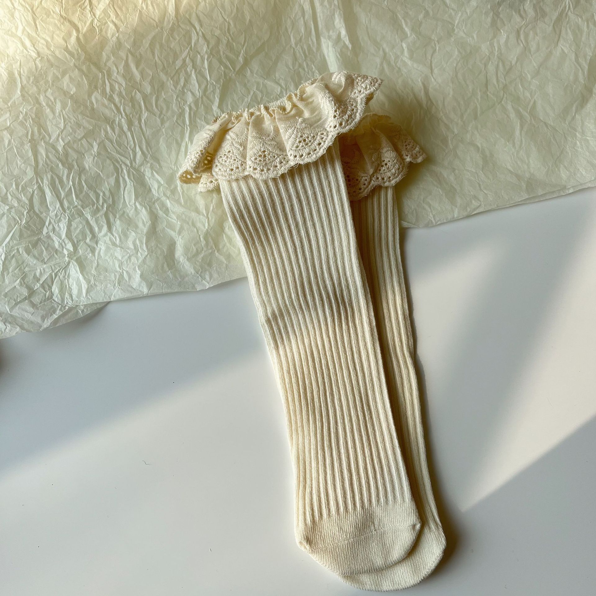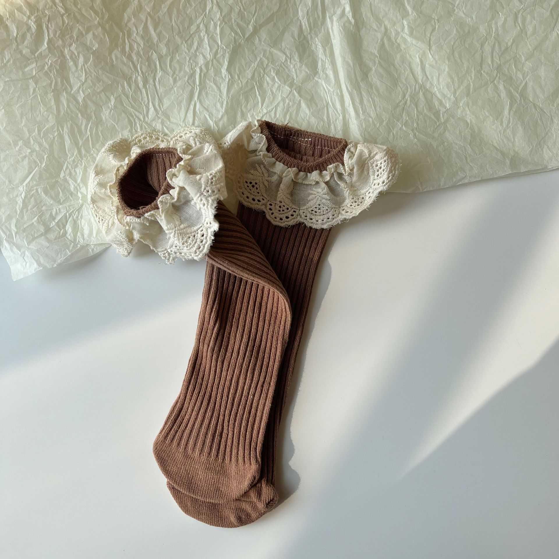 새로운 어린이 레이스 커프 양말 더블 바늘 중간 길이 스타킹 한국 유행 공주 레이스 코트 아기
