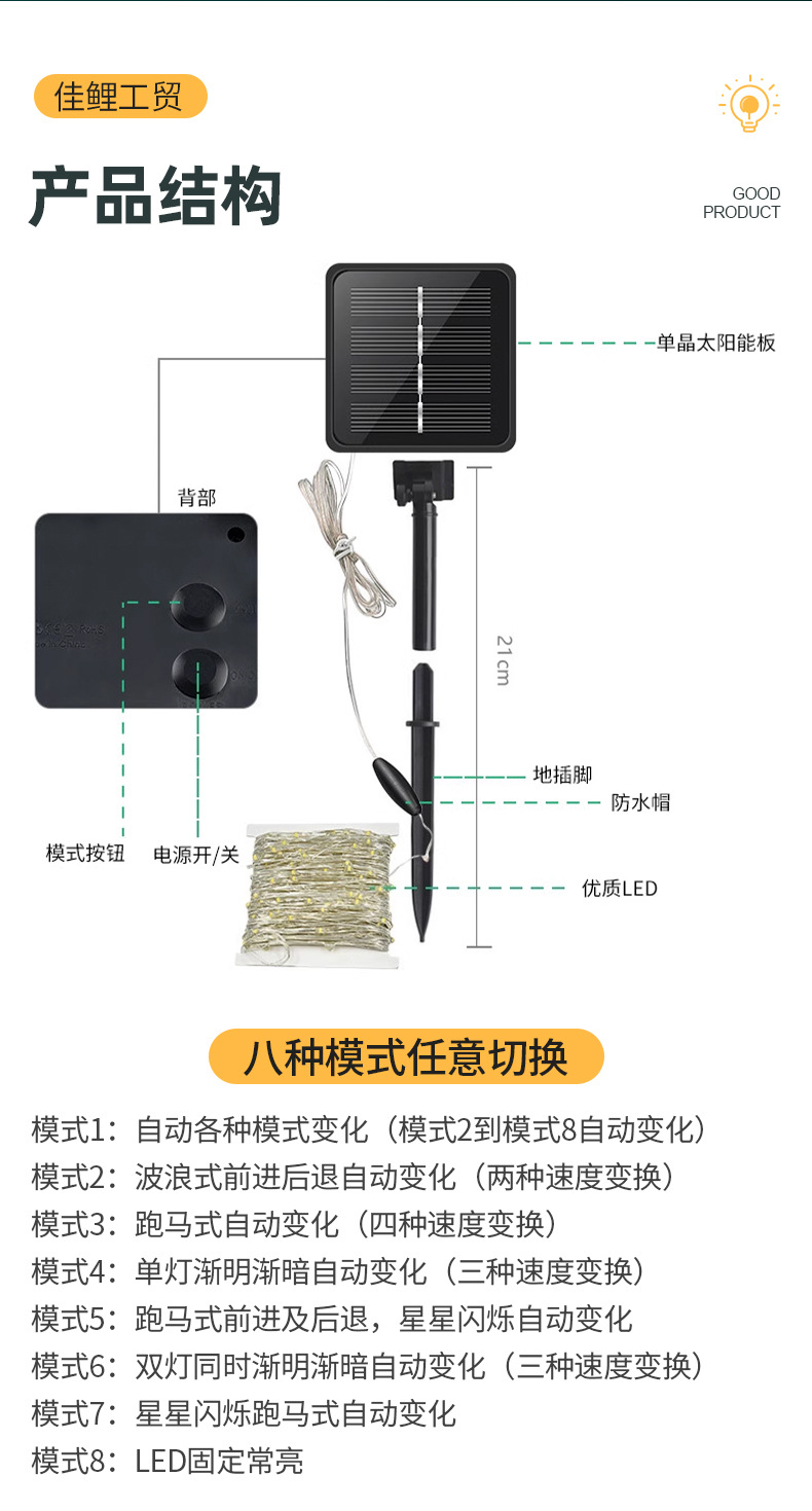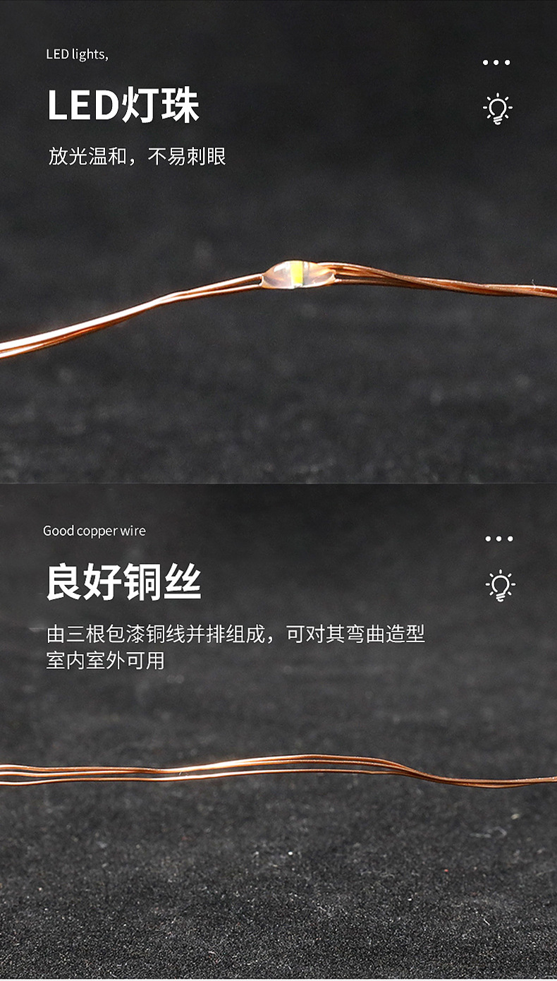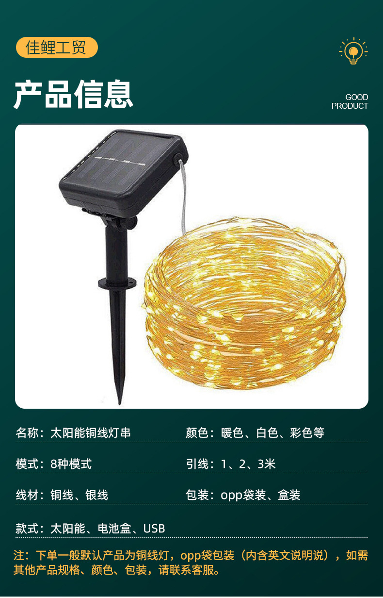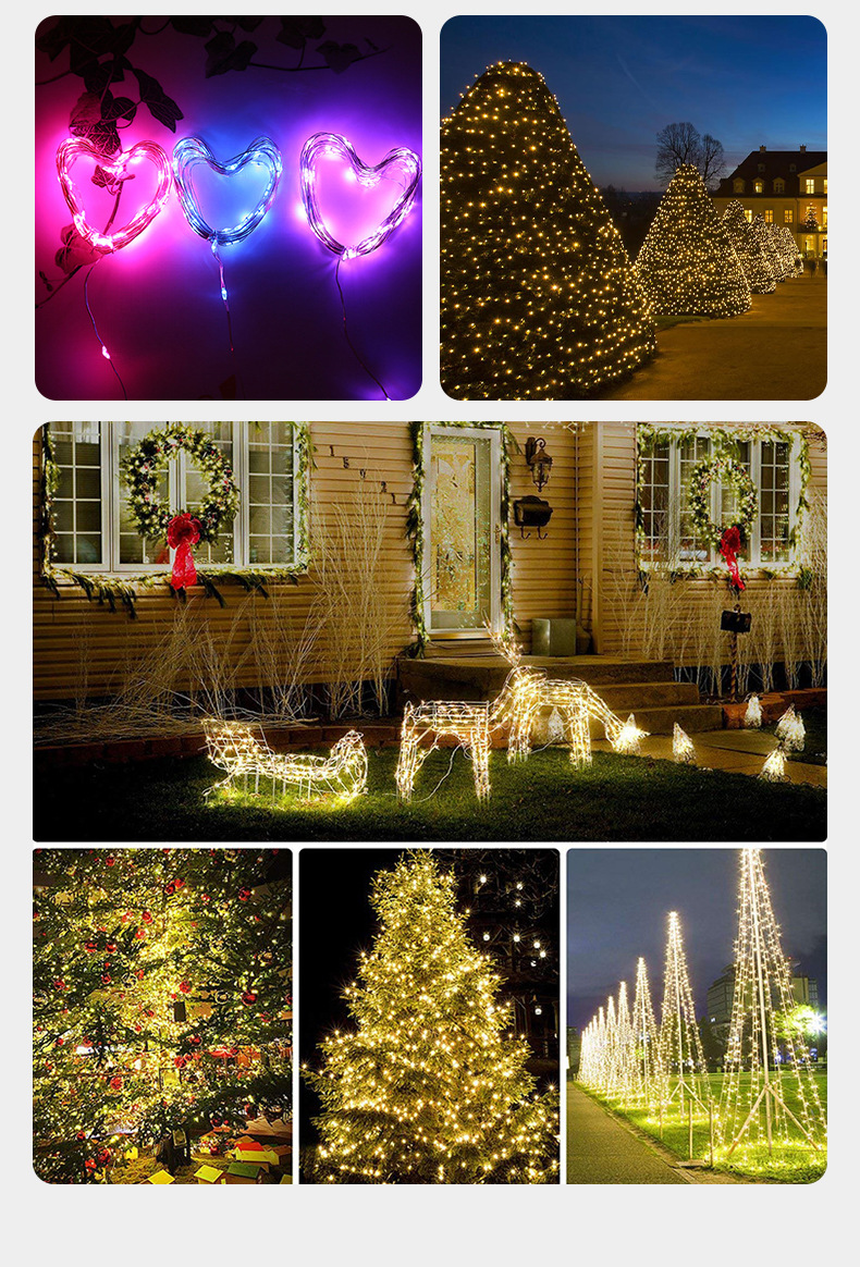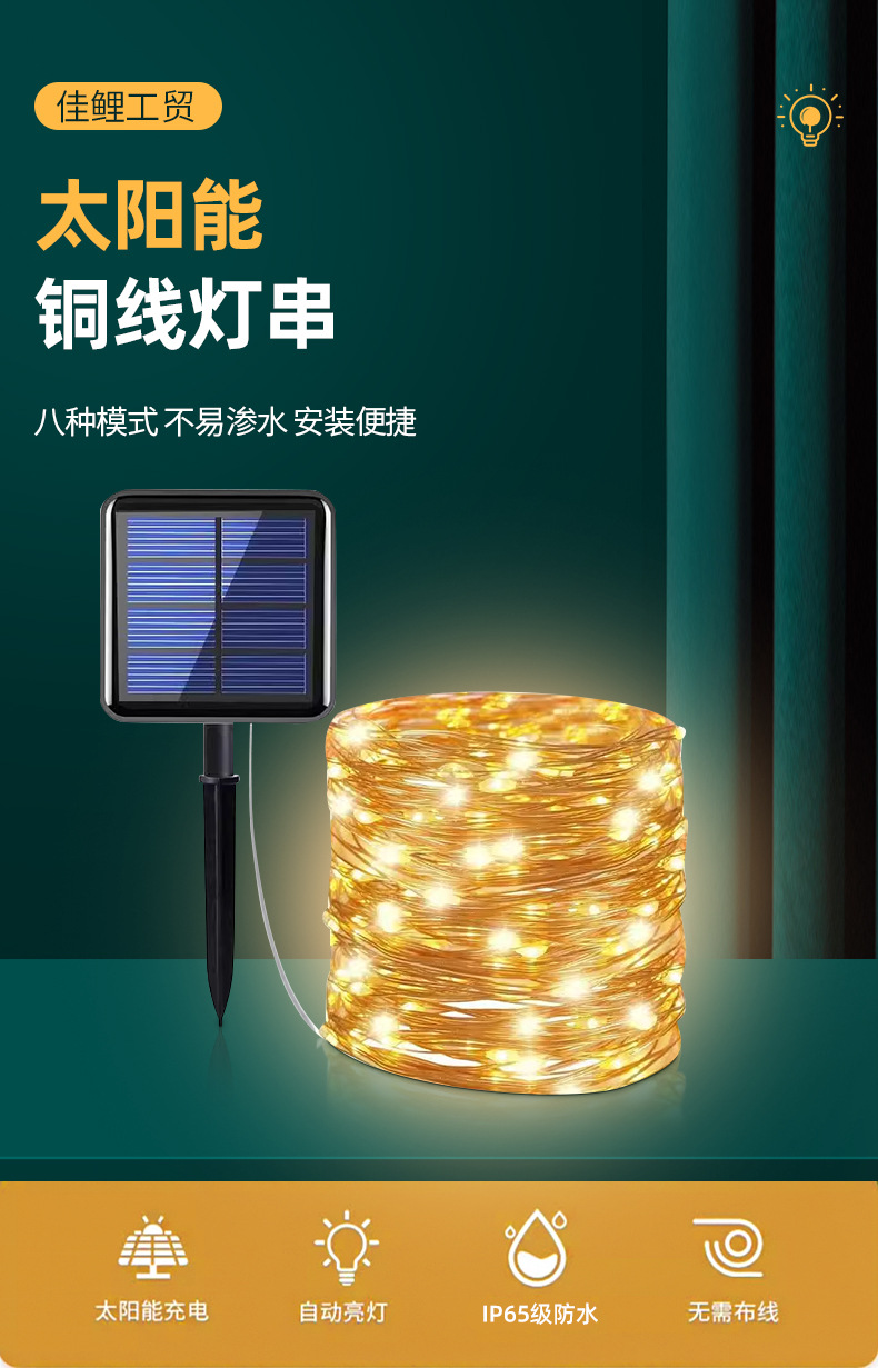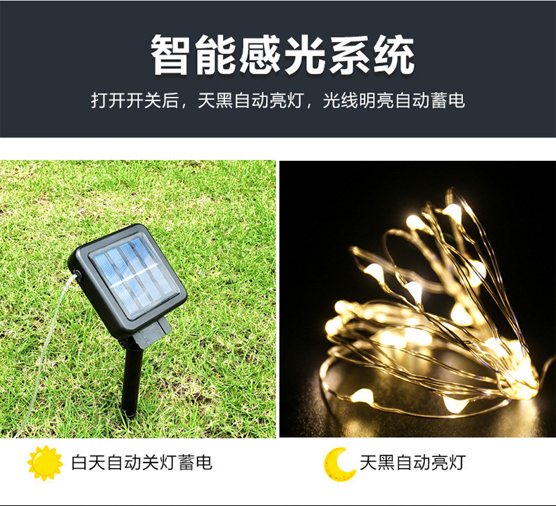 국경을 넘는 태양광 구리선 조명 스트링, 야외용 방수 장식 조명 스트립, 정원 발코니 LED 조명 스트링