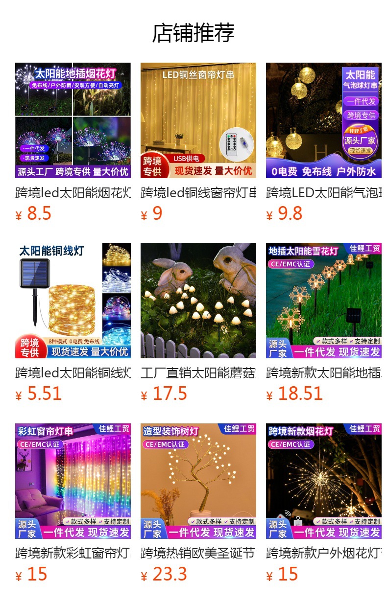 국경을 넘는 태양광 구리선 조명 스트링, 야외용 방수 장식 조명 스트립, 정원 발코니 LED 조명 스트링스토어 가기