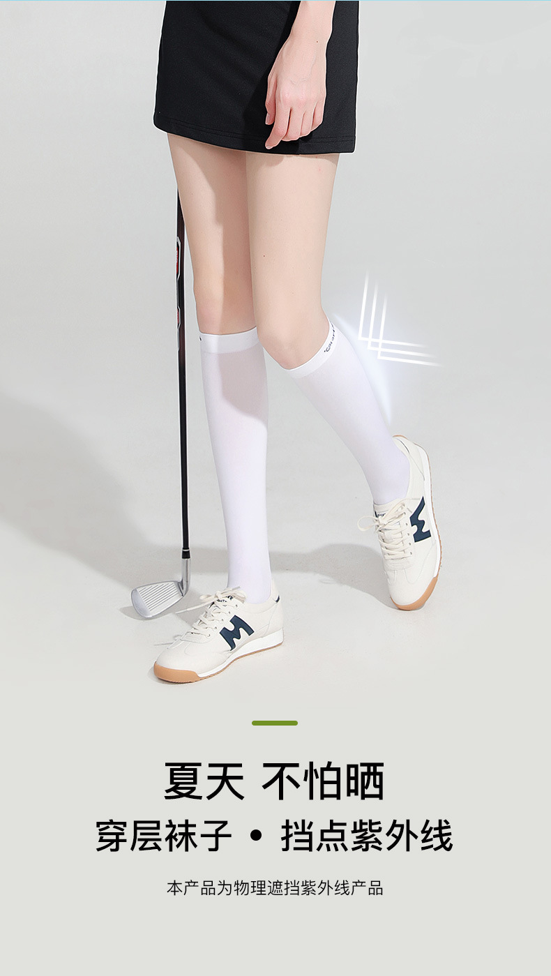 여름 단색 스타킹 여자의 멋진 자외선 차단제 얼음 실크 통기성 골프 스포츠 높은 스타킹 학술 스타일 송아지 양말스토어 가기