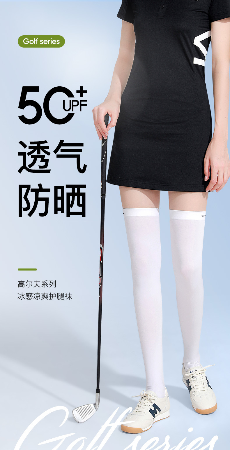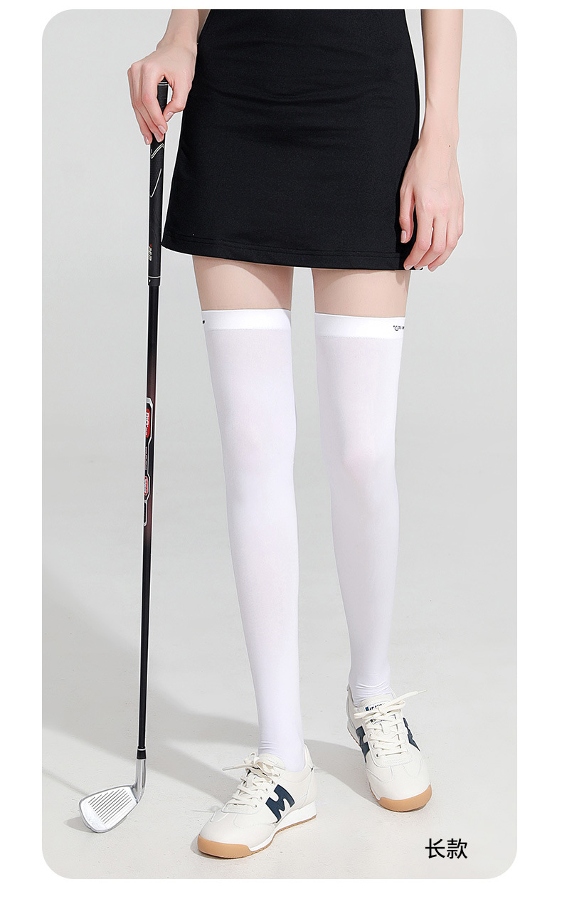 여름 단색 스타킹 여자의 멋진 자외선 차단제 얼음 실크 통기성 골프 스포츠 높은 스타킹 학술 스타일 송아지 양말
