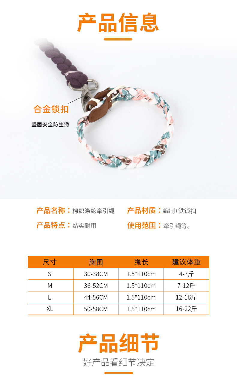 비표준 맞춤형 폴리에스터 짠 애완동물 가죽끈, 손으로 짠 끈으로 땋은 작은 개와 고양이 가죽끈스토어 가기
