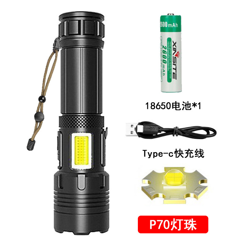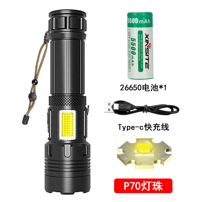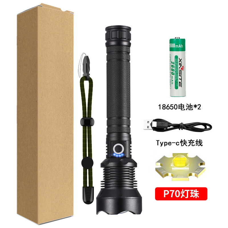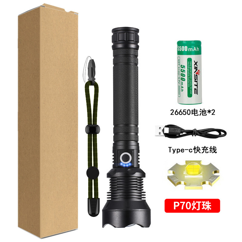 • 짧은 P70 손전등 + USB 케이블 + 1*26650 배터리