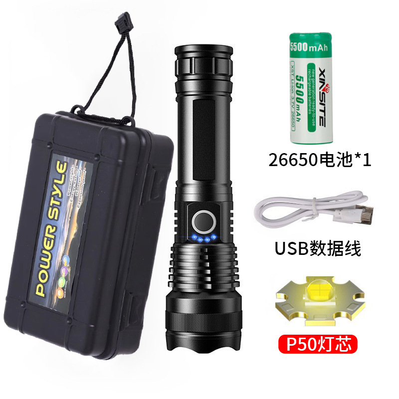 • P50 손전등 + USB + 26650 리튬 배터리