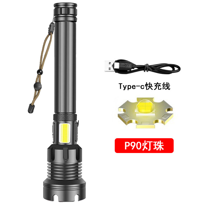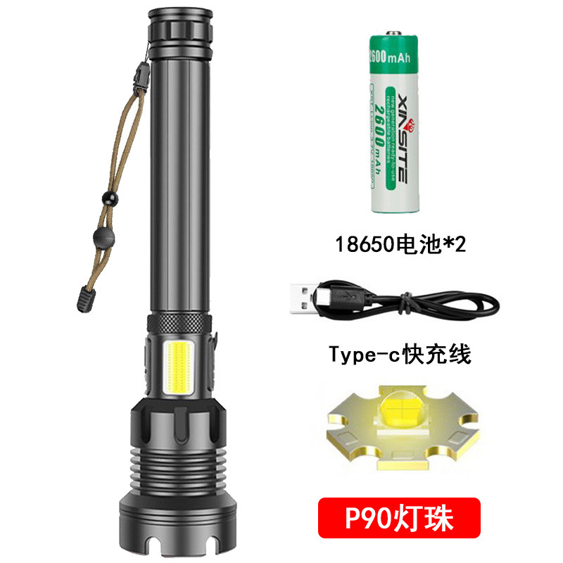 • 긴 P90 손전등 + USB 케이블 + 2*26650 배터리
