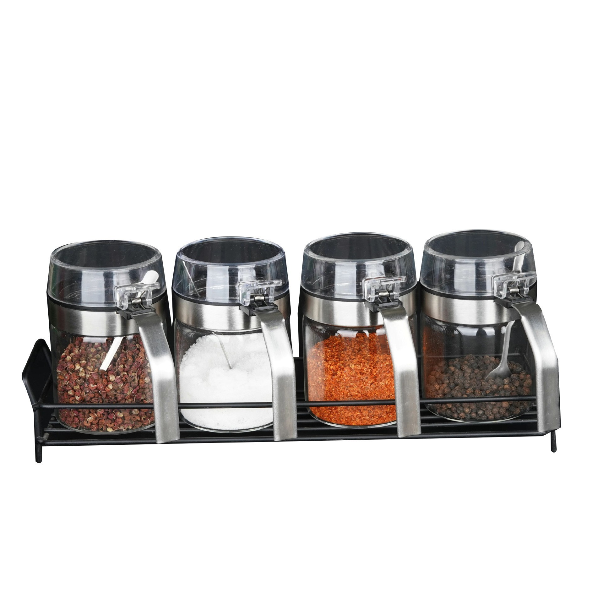 유리 조미료 상자 조미료 항아리 조합 조미료 병 소금 항아리 주방 용품 가정용 소스 식초 오일 세트