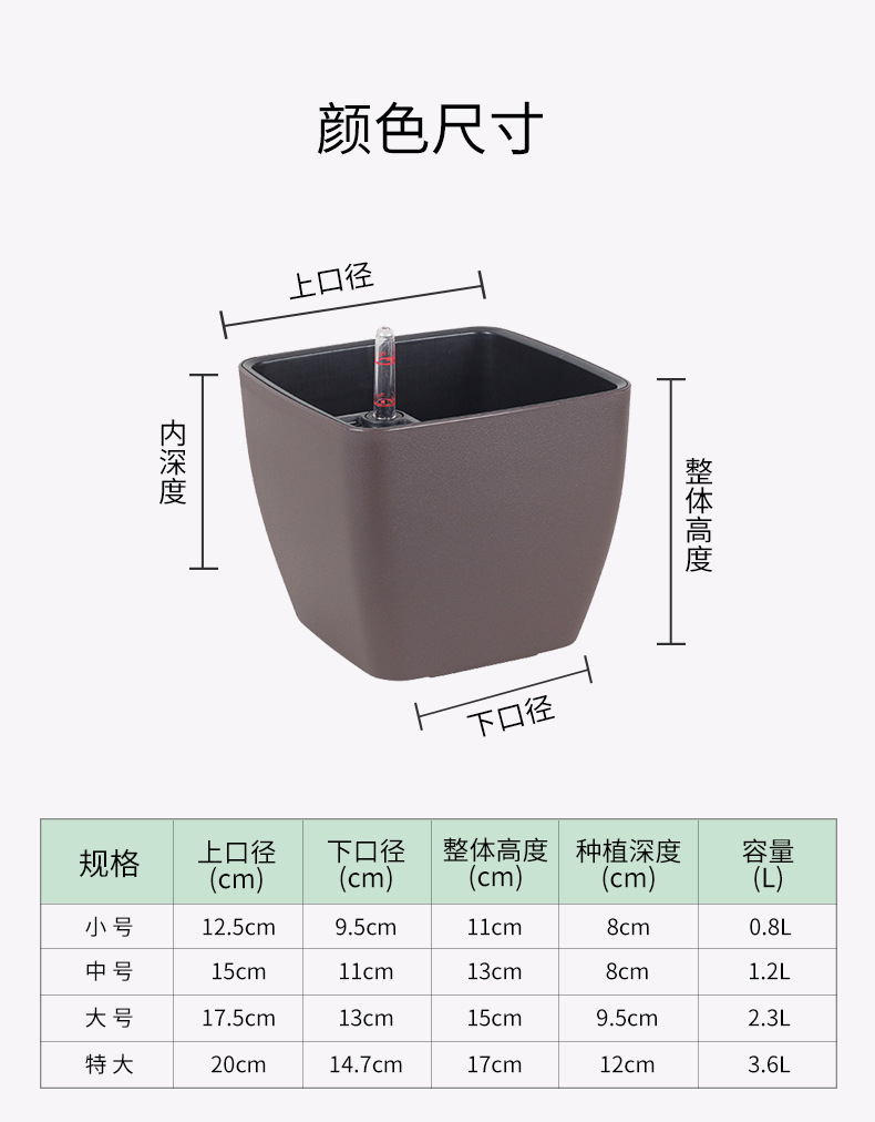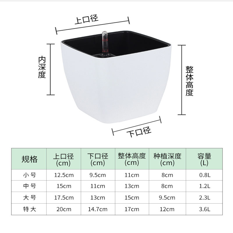 꽃 심기 사랑 자기 흡수 화분 사각 대구경 심플 그린 장미 분재 탁상 자기 흡수 화분 도매스토어 가기