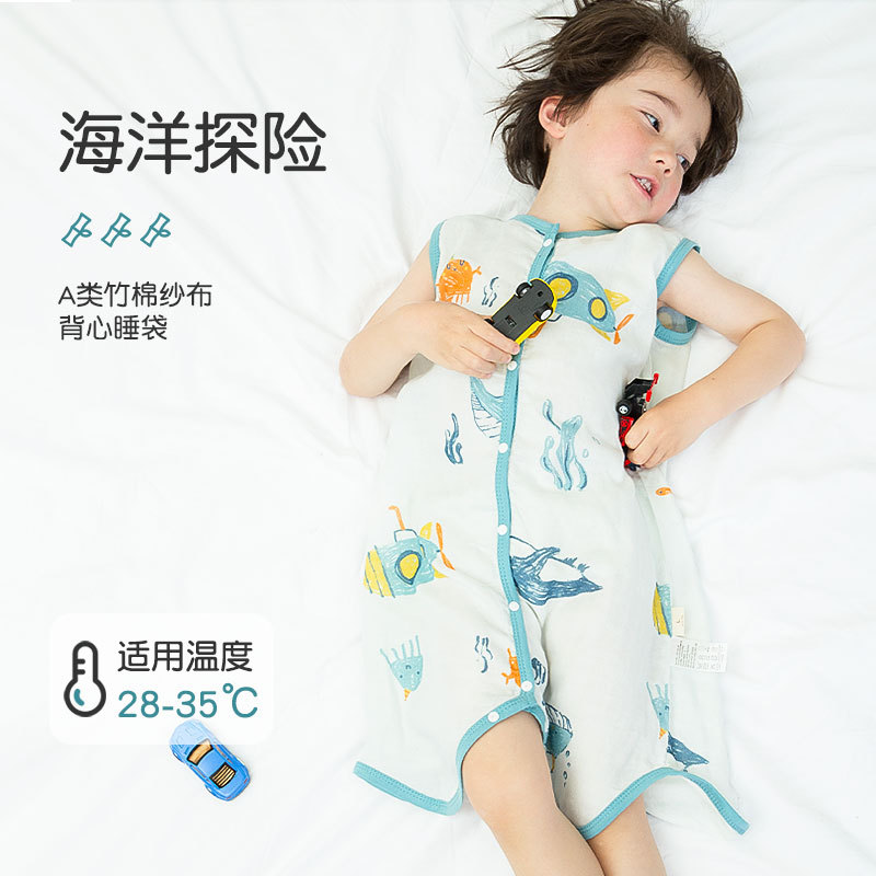 2026년 신형 아기 조끼형 침낭, 여름용 얇은 거즈 민소매 조끼, 아기 및 어린이용 에어컨 방의 발차기 방지 이불스토어 가기