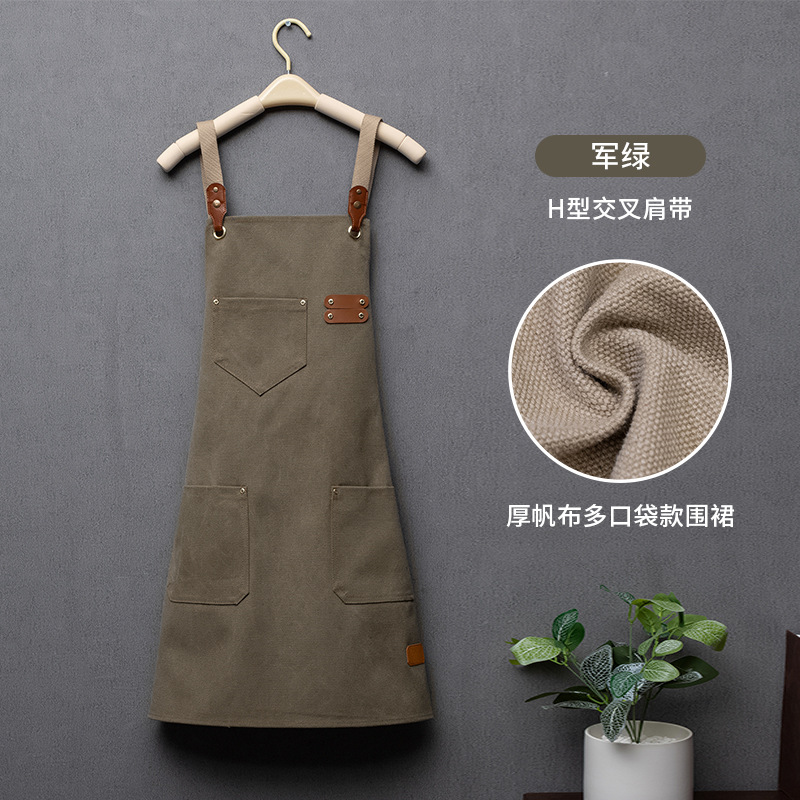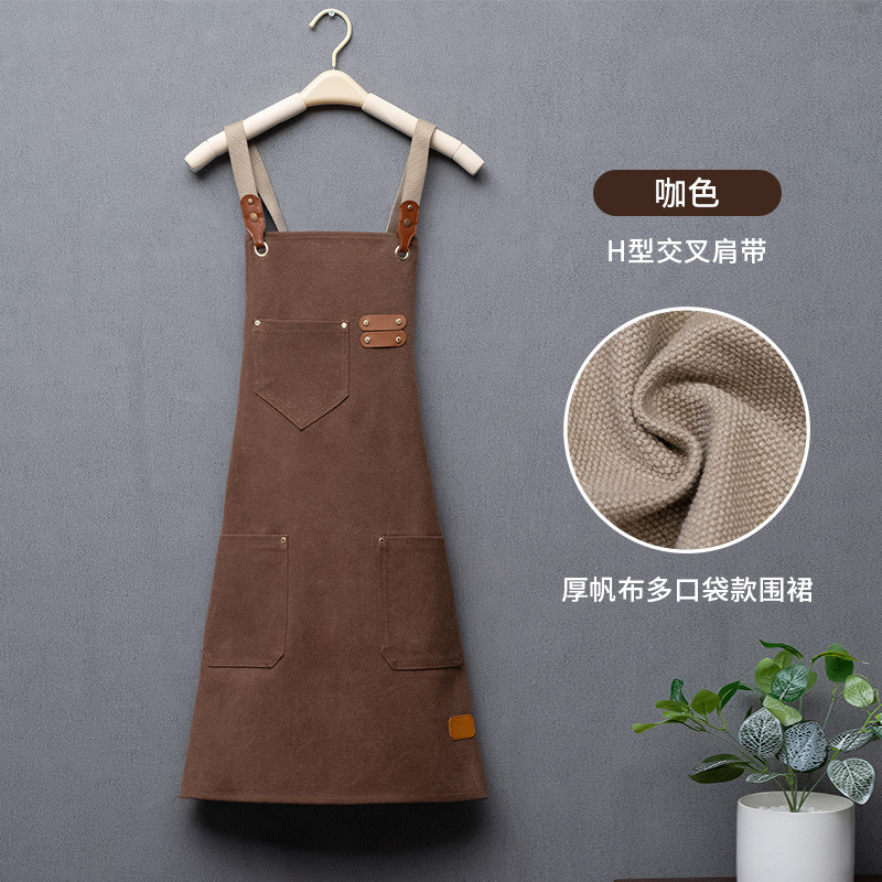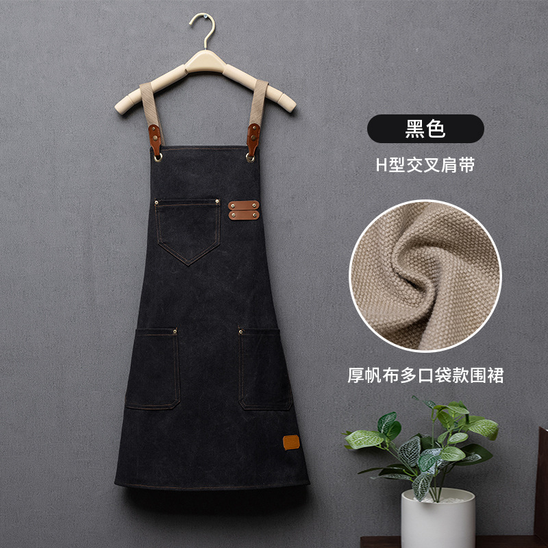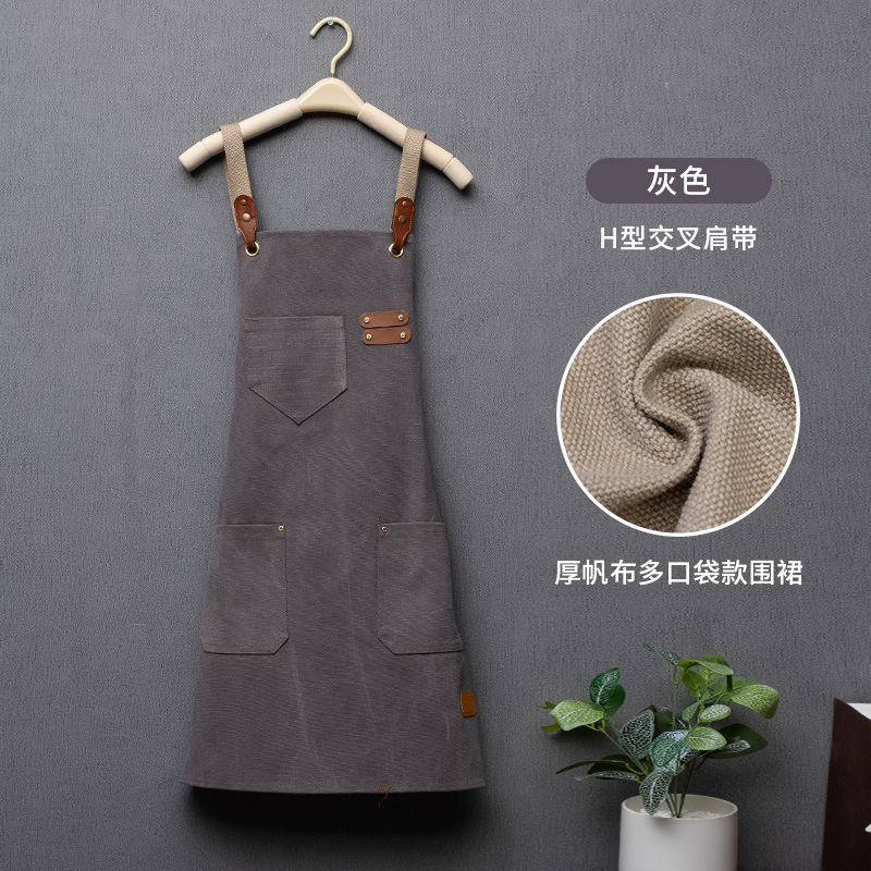 두꺼운 멀티 포켓 캔버스 H 어깨 앞치마 우유 티 케이크 가게 내마모성 매니큐어 미용 커피 숍 허리 바지스토어 가기
