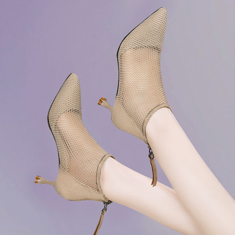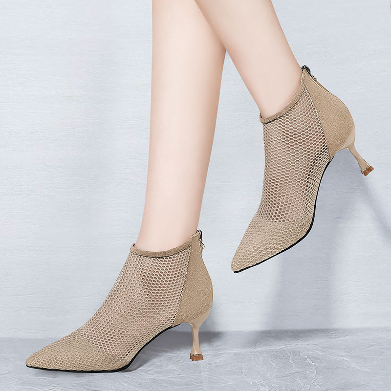 로마 스타일 여성용 컷아웃 샌들 부츠 2026 봄 여름 신상 유럽 및 미국 스타일 메쉬 소재 얇은 굽 숏부츠 뾰족코 하이탑 뒷지퍼
