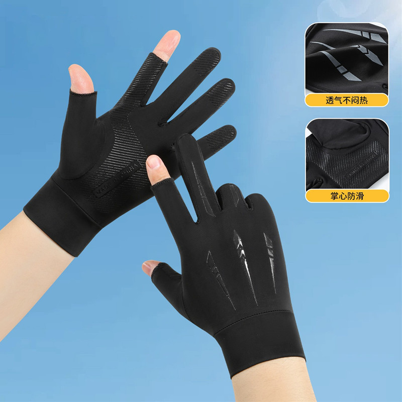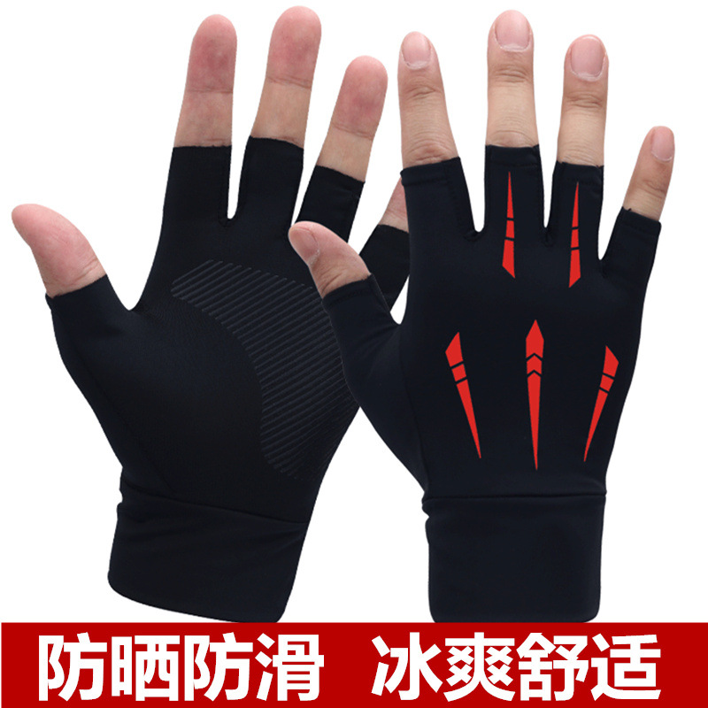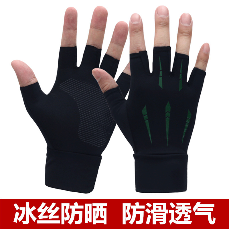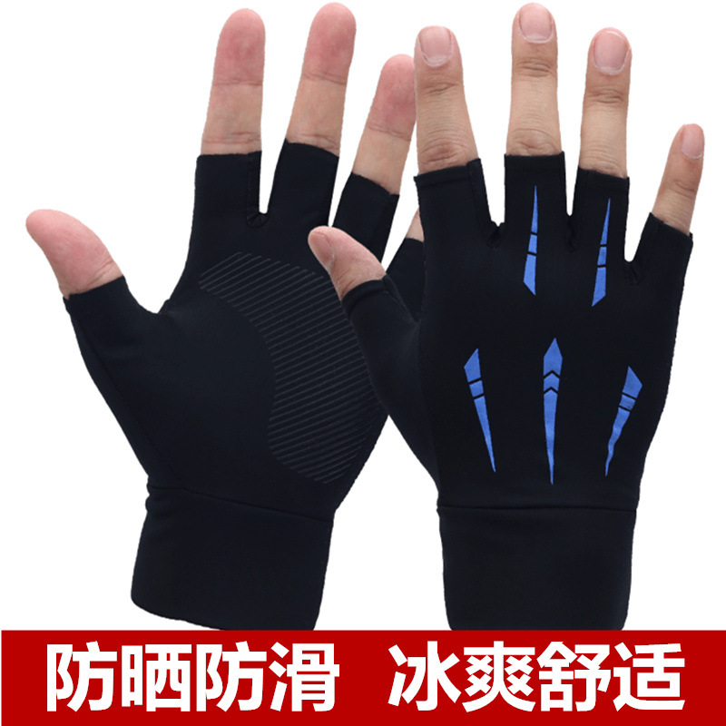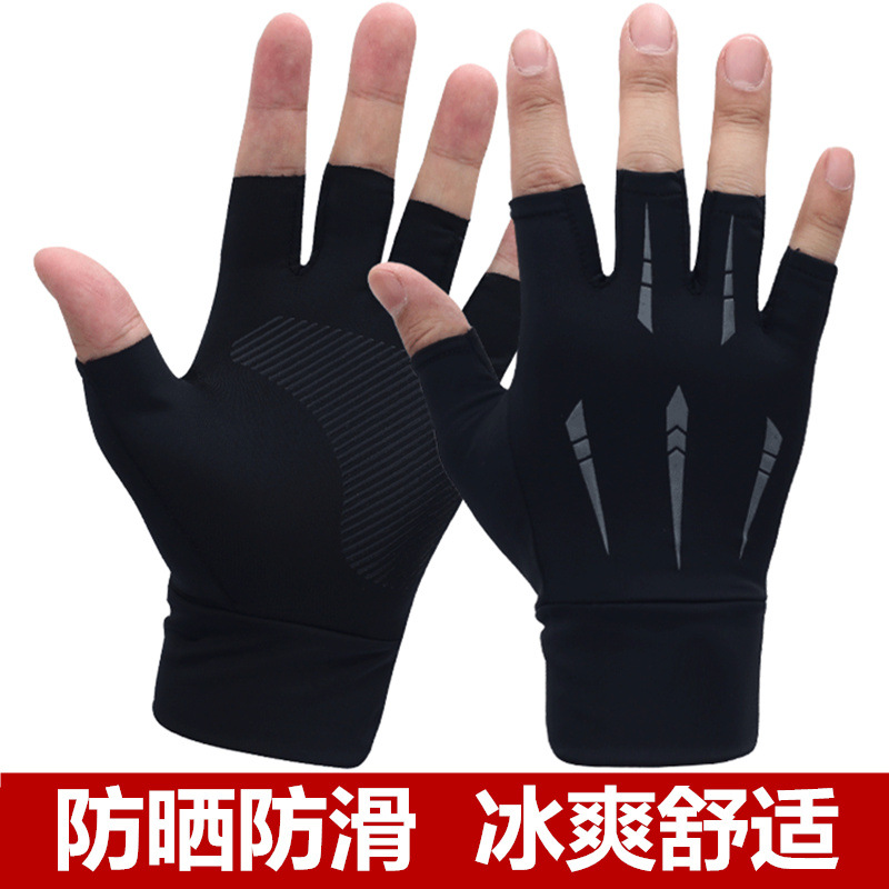 남성용 반손가락 사이클링 자외선 차단 장갑, 여름용 얇은 야외용 미끄럼 방지 통기성 도매 테이크아웃 운전용 손가락 없는 보호 장갑