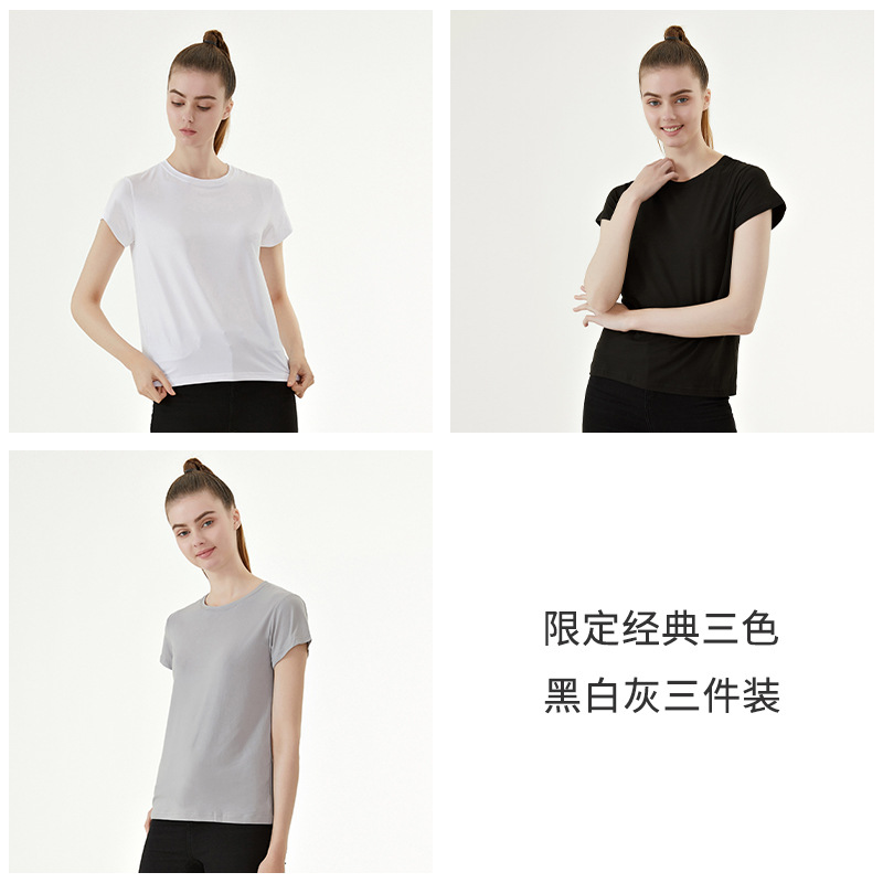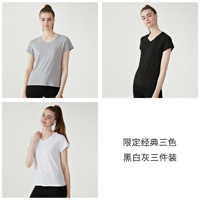 여성용 블랙 앤 화이트 그레이 쓰리피스 라운드넥 티셔츠 V넥 반소매 심플 만능 반팔 여름 얇은 아이스 쿨 탑스토어 가기