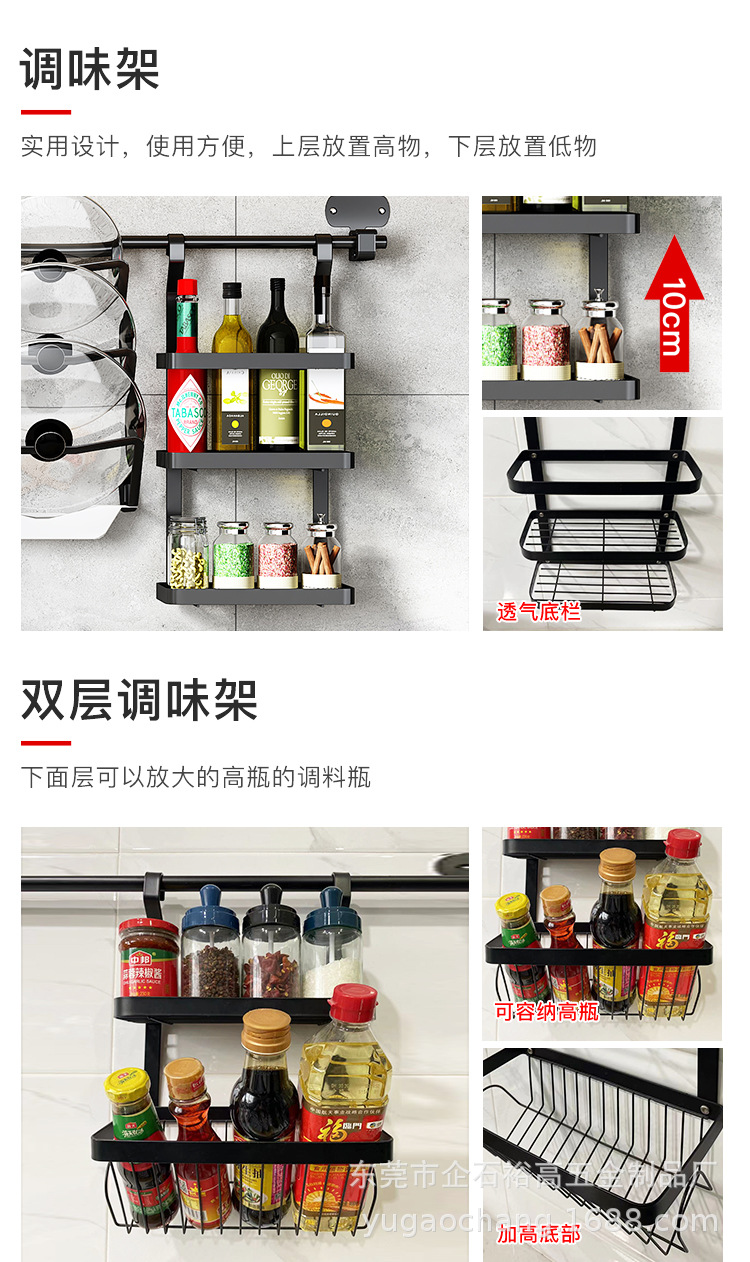 • 블랙 2 층 조미료 랙