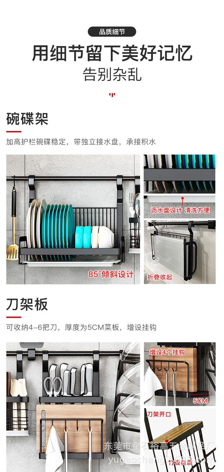 주방 랙 스테인레스 스틸 벽걸이 형 펀치 프리 배수 그릇 및 접시 랙 나이프 랙 냄비 랙 후크 보관 랙
