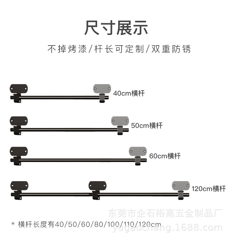 • 블랙 65CM2 바 (130cm 극) (3 후크 포함)