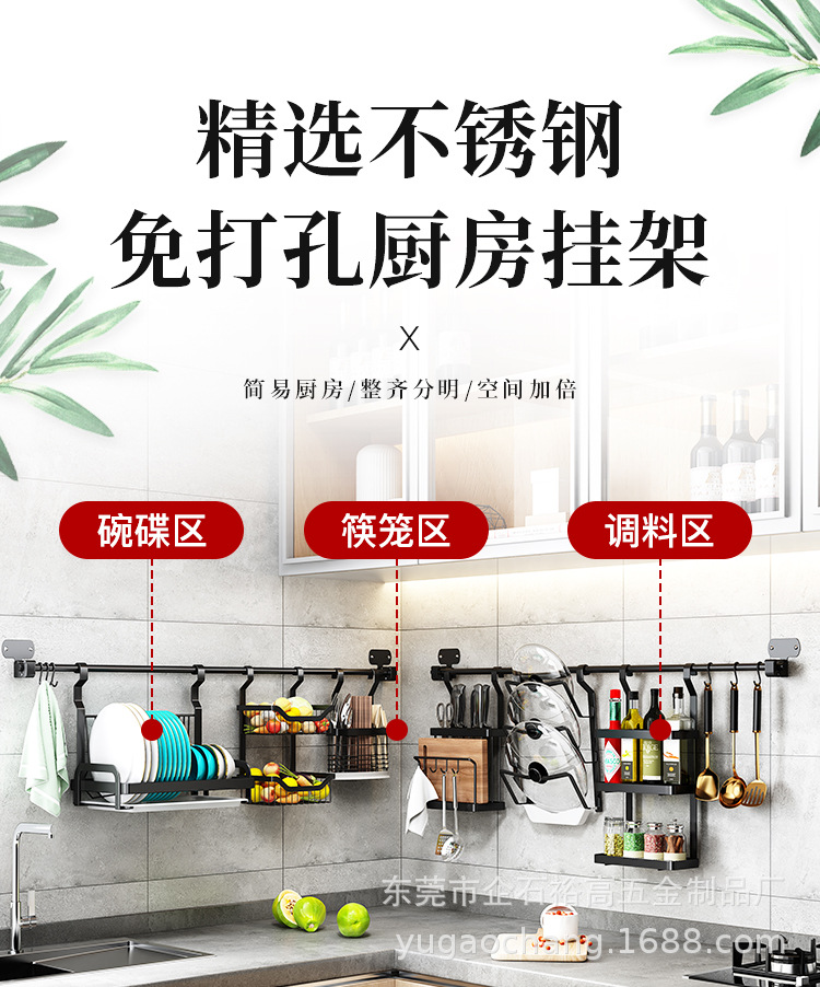 주방 랙 스테인레스 스틸 벽걸이 형 펀치 프리 배수 그릇 및 접시 랙 나이프 랙 냄비 랙 후크 보관 랙스토어 가기