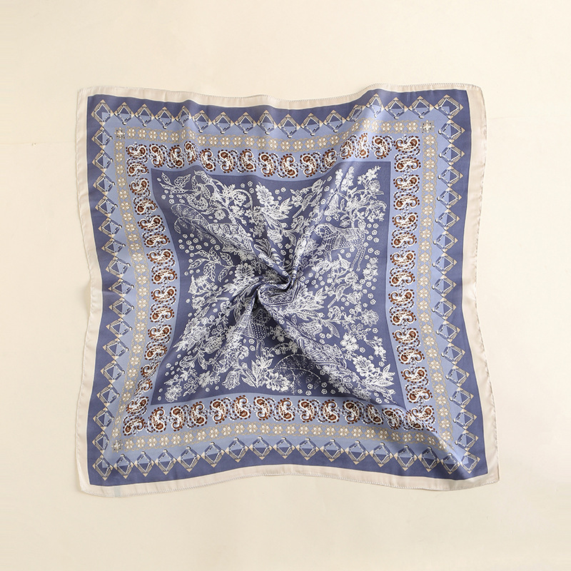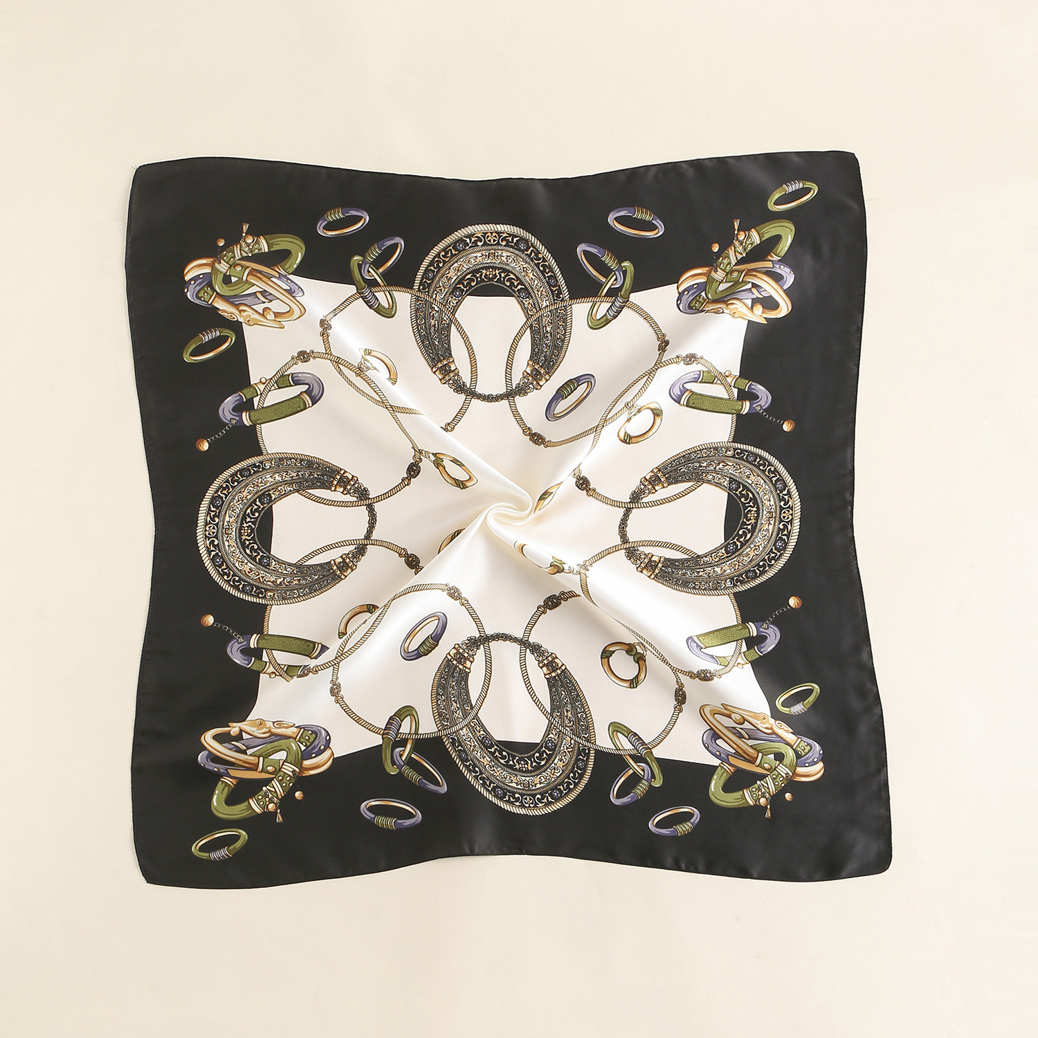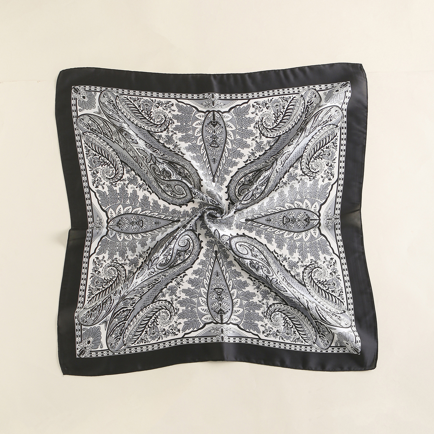 문학 복고풍 사각형 스카프 고급 금테 캐슈 꽃 여성 모조 실크 스카프 얇은 기질 다목적 실크 스카프 도매