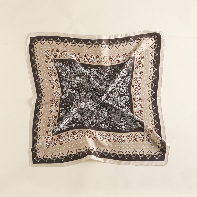 문학 복고풍 사각형 스카프 고급 금테 캐슈 꽃 여성 모조 실크 스카프 얇은 기질 다목적 실크 스카프 도매스토어 가기