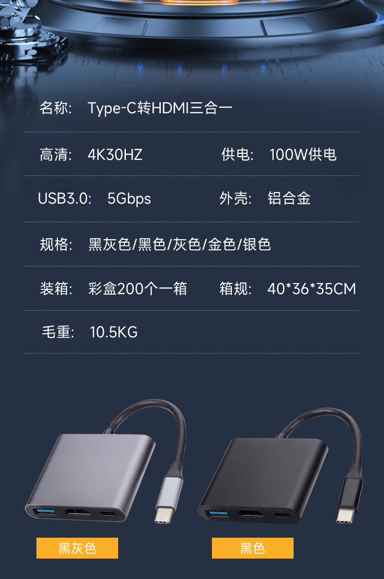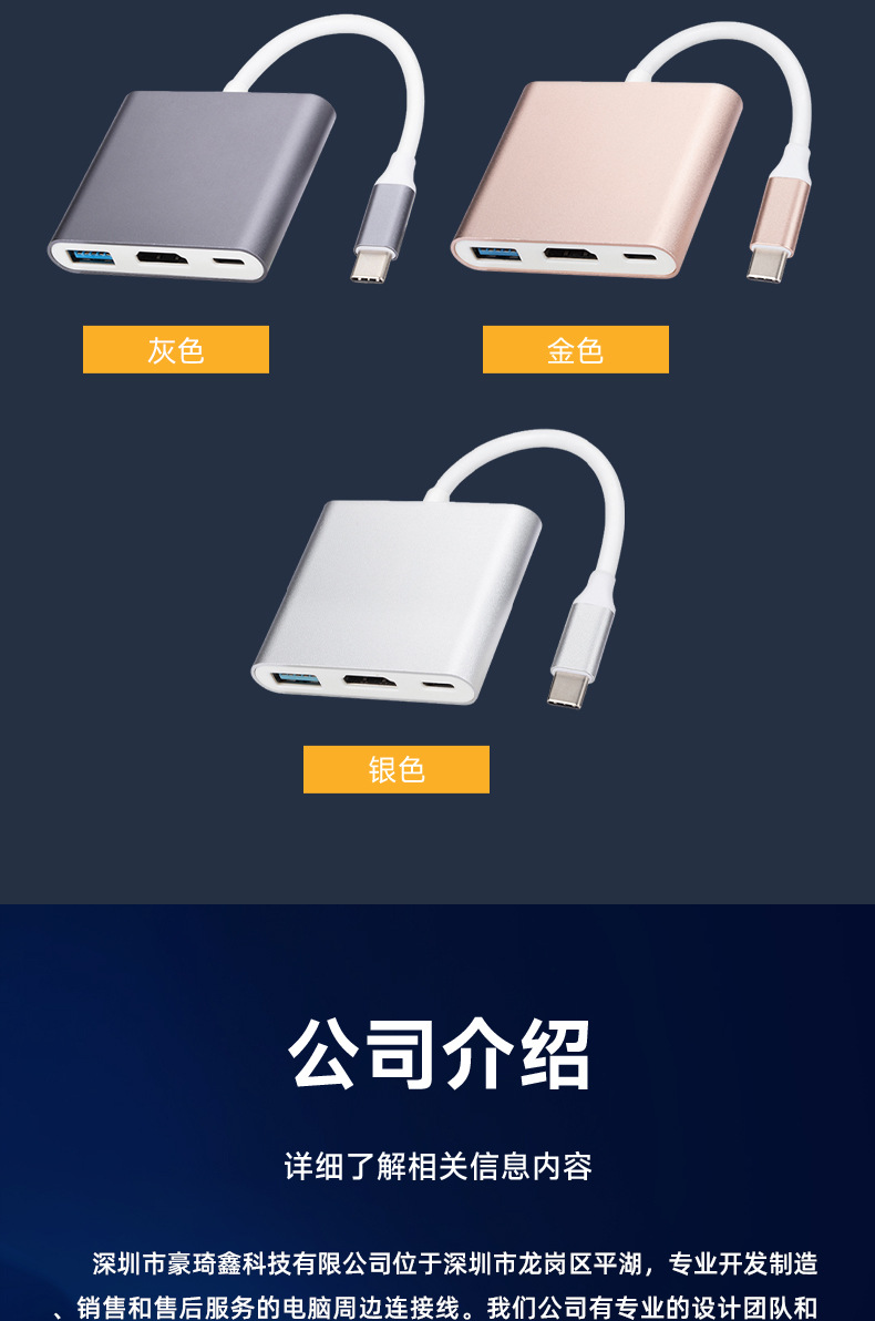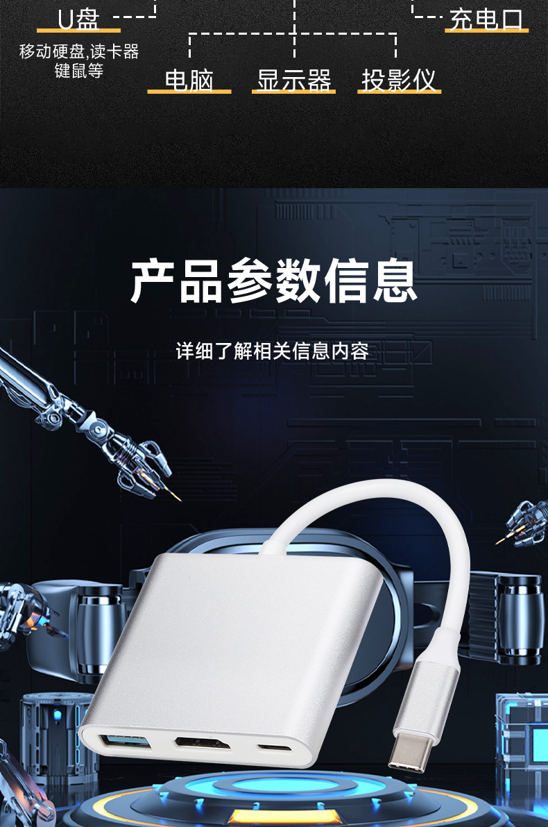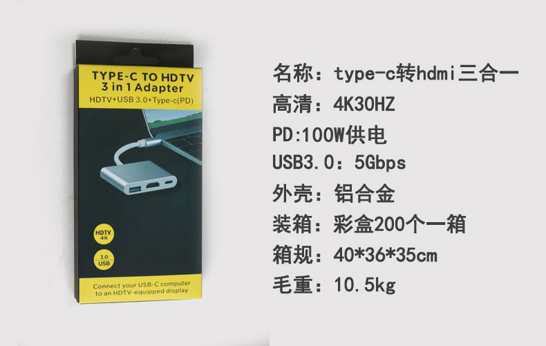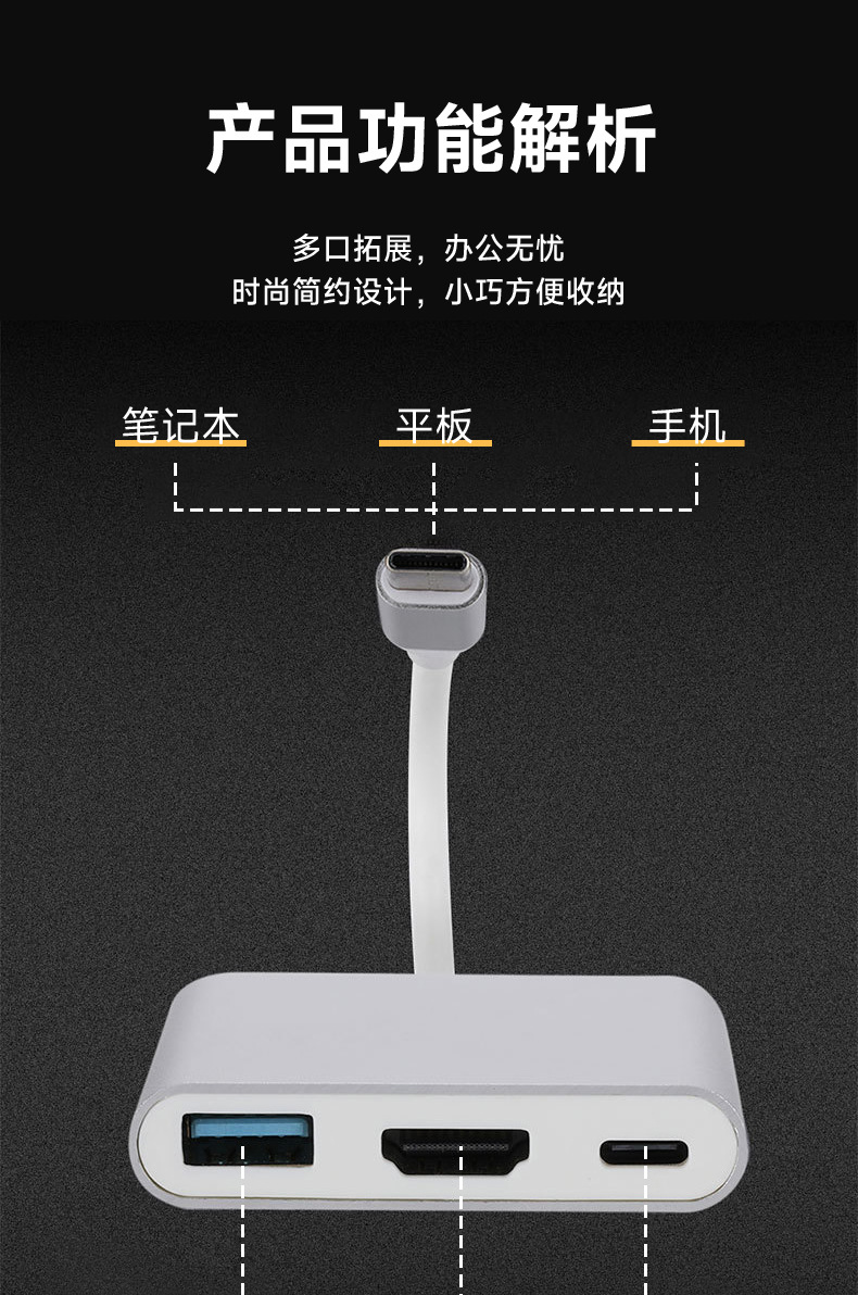 USB 3.1 Type-C转HDMI / USB 3.0 / USB-C多端口适配器