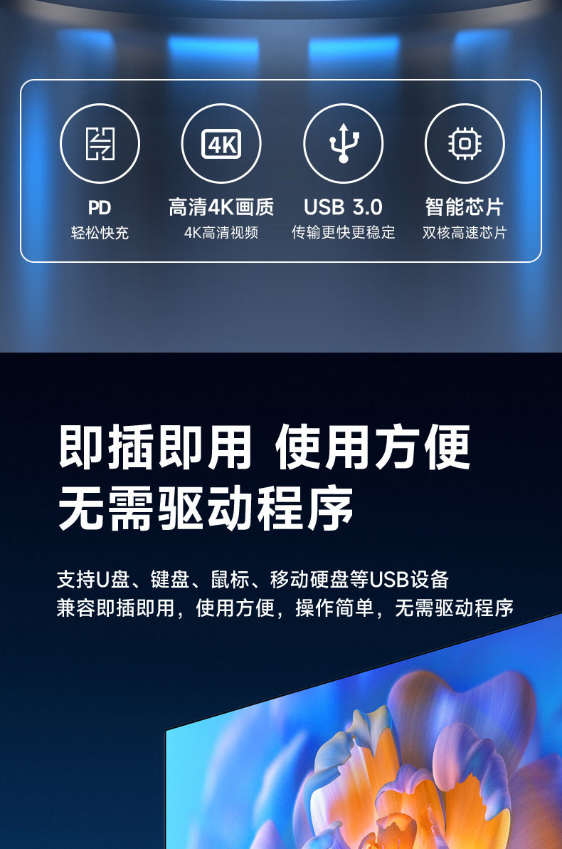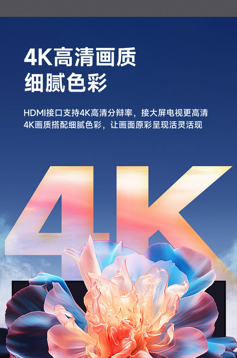 支持视频分辨率高达4K UHD(3840x2160)30Hz,兼容1080P 60Hz,720P。