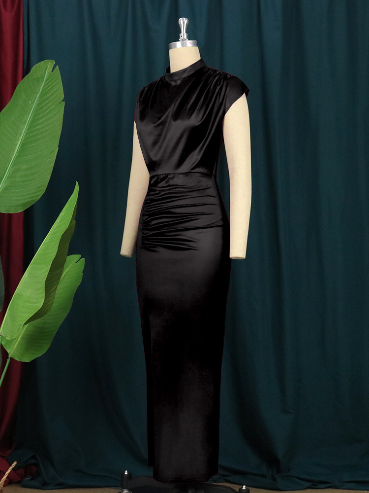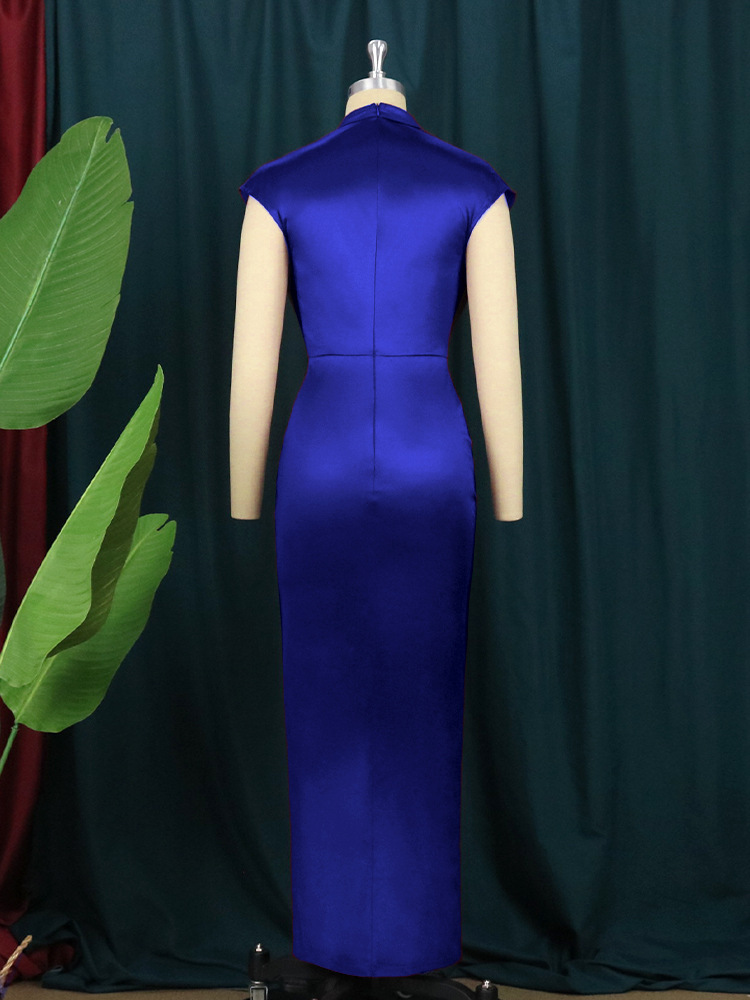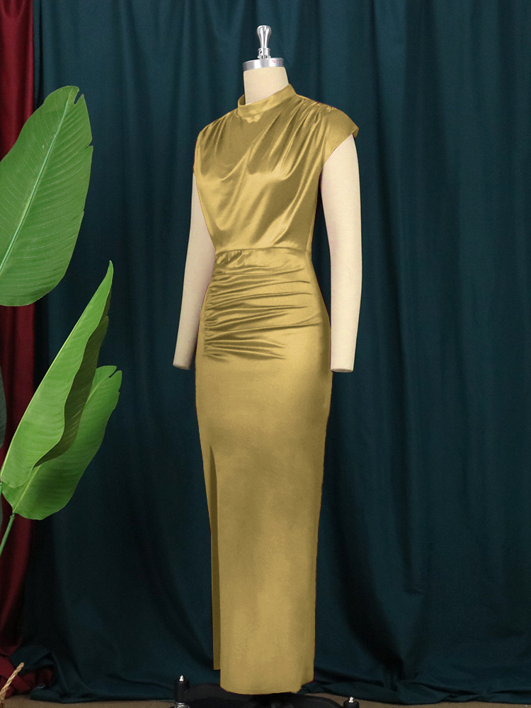 AM211217 긴 원피스 단색 원피스 하이 웨이스트 우아한 통근 빨간 음악 만들기 원피스 긴 드레스