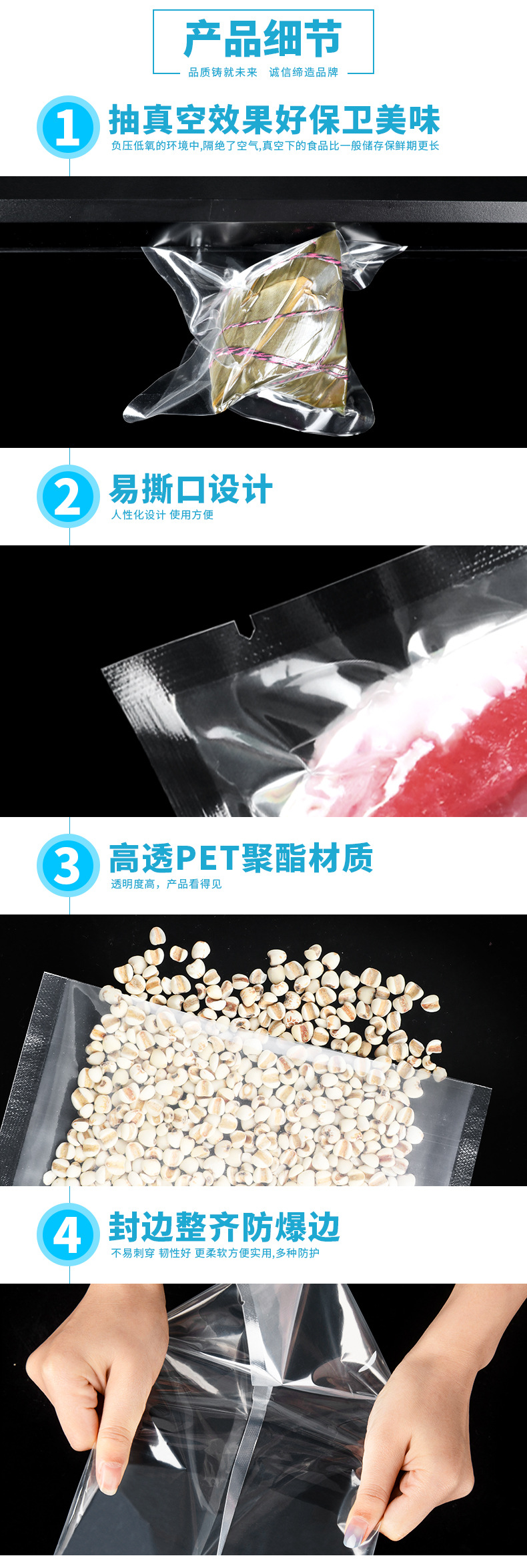 골드 플라스틱 16 실크 식품 진공 밀폐 백 투명 PET 플라스틱 상용 진공 압축 백 도매 인쇄 가능스토어 가기