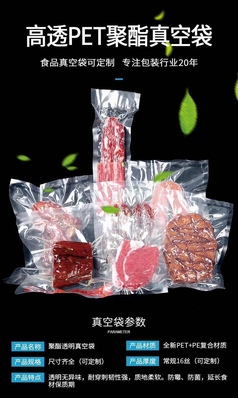 골드 플라스틱 16 실크 식품 진공 밀폐 백 투명 PET 플라스틱 상용 진공 압축 백 도매 인쇄 가능