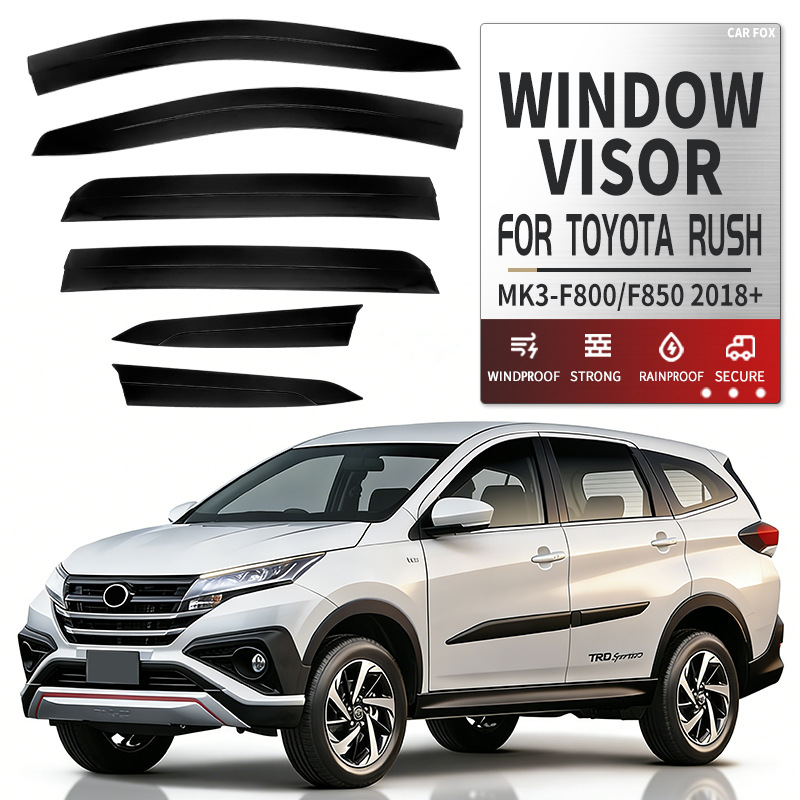 • 토요타 러쉬 [6PCS] [MK3-F800-F850 2018+] [밝은 스트립 없음] 레인 쉴드