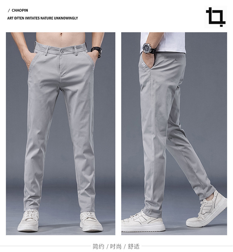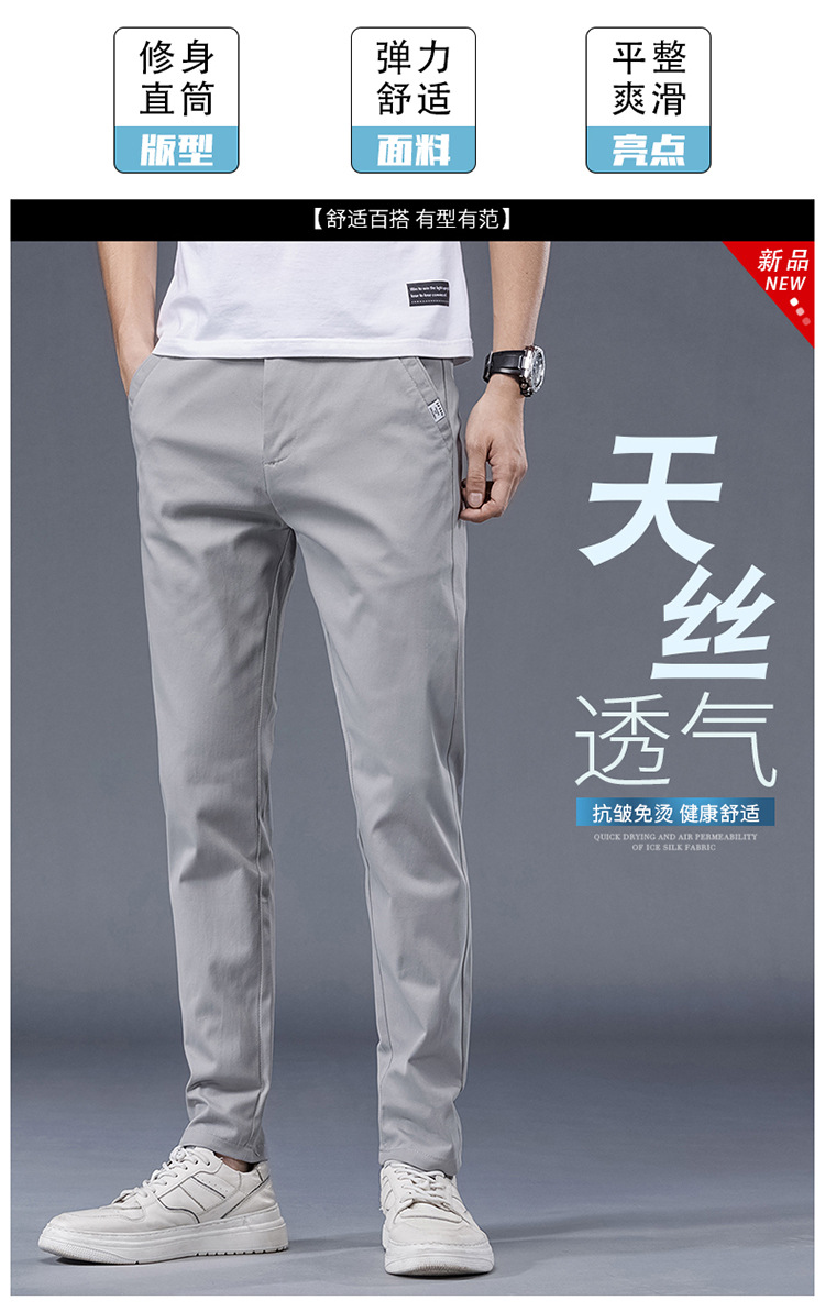 봄과 여름 남자의 간단한 슬림 스트레이트 탄성 2024 새로운 패션 텐셀 통기성 캐주얼 바지스토어 가기