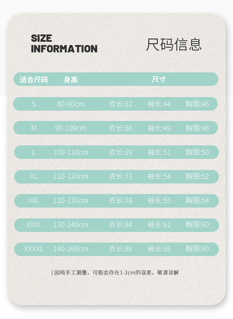 • XXXXL 코드 권장 높이 140-160cm
