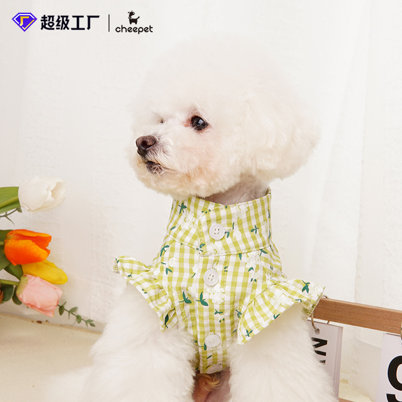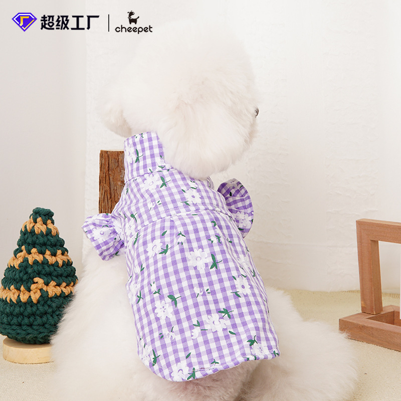 작은 개 옷 여름 얇은 꽃 셔츠 일본과 한국 고양이 캐주얼 레이스 셔츠 애완 동물 의류 액세서리 도매스토어 가기