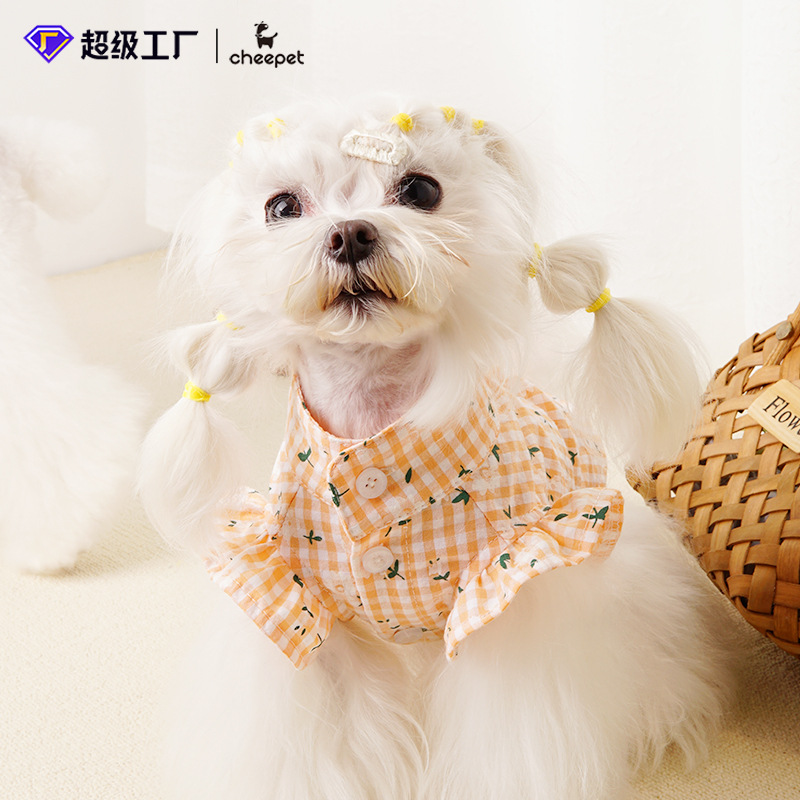 작은 개 옷 여름 얇은 꽃 셔츠 일본과 한국 고양이 캐주얼 레이스 셔츠 애완 동물 의류 액세서리 도매