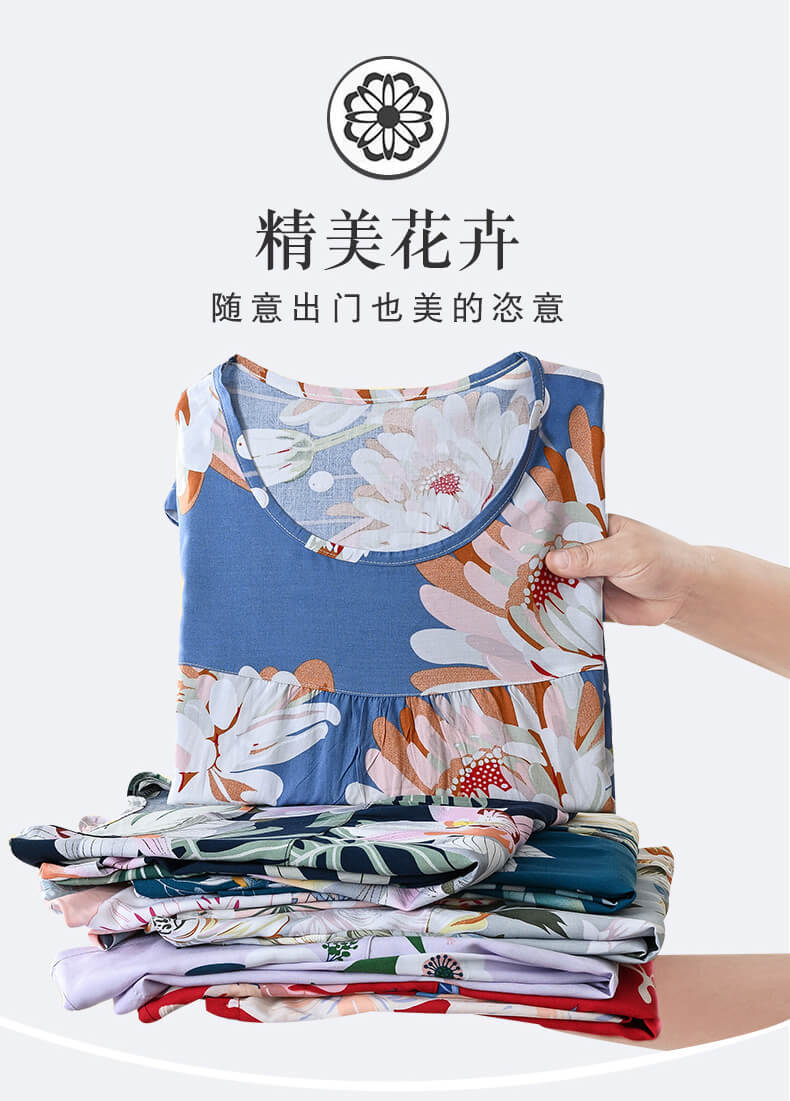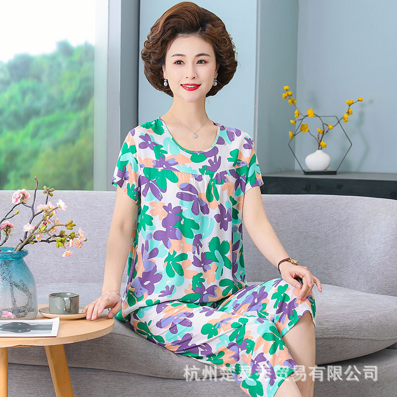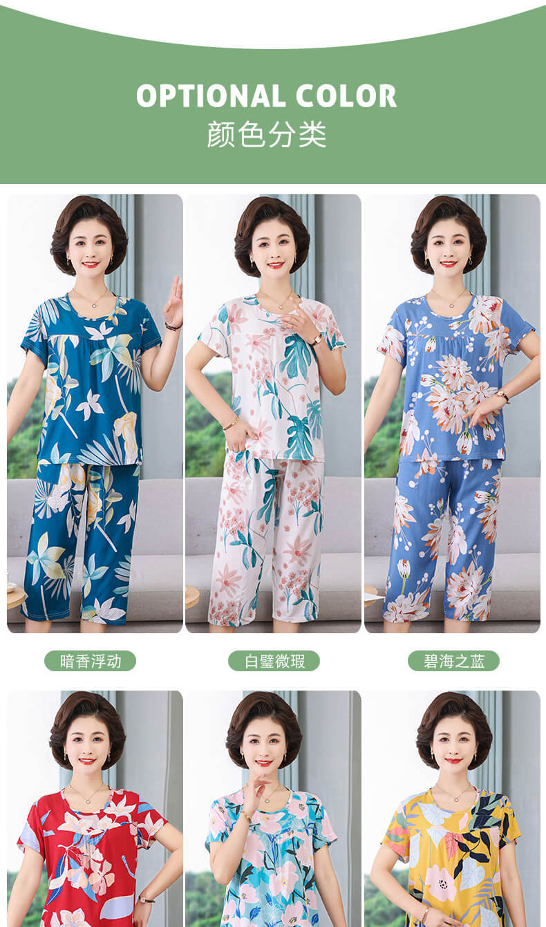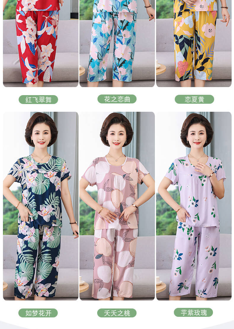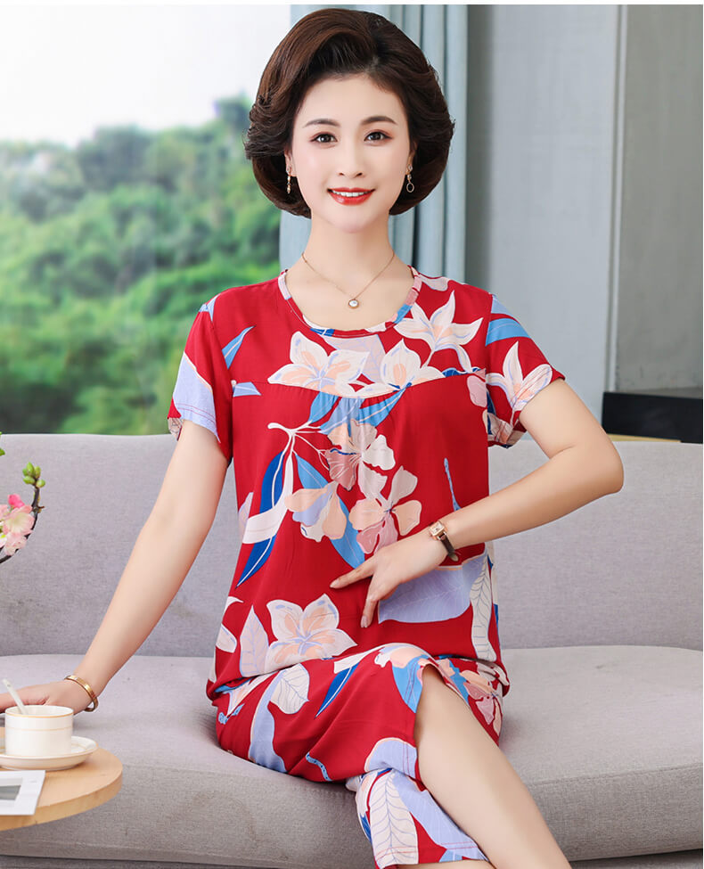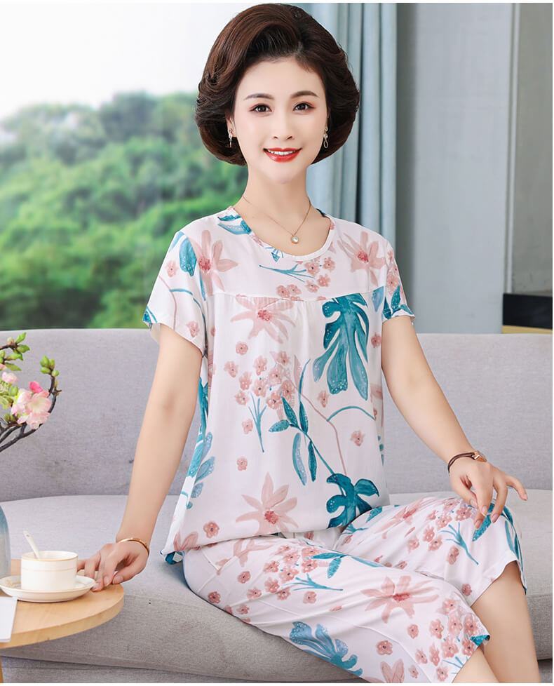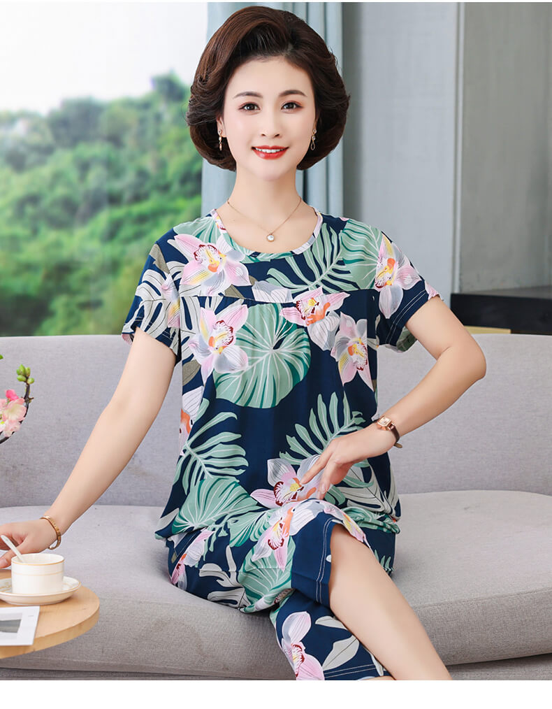 엄마 잠옷 봄과 가을 여성의 중년 및 노인 반팔 세트 면 실크 홈 의류 인공 면 여성 캐주얼 플러스 사이즈 여름스토어 가기
