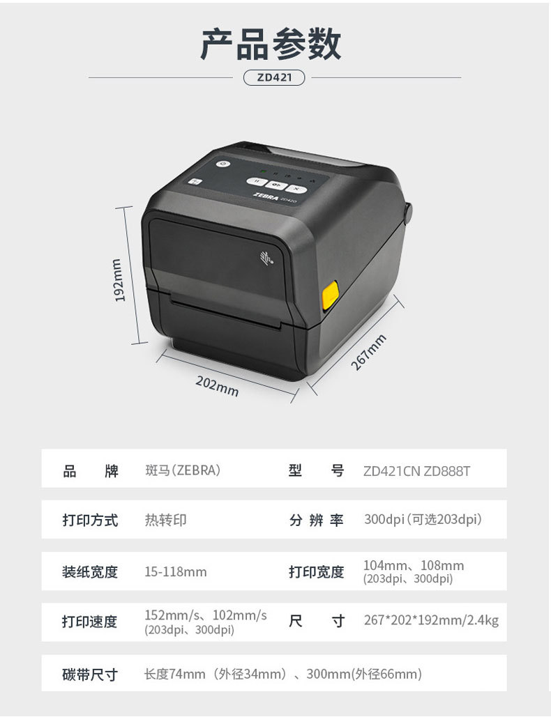 Zebra斑马ZD421/ZD888T标签机 电子面单跨境专供不干胶标签打印机