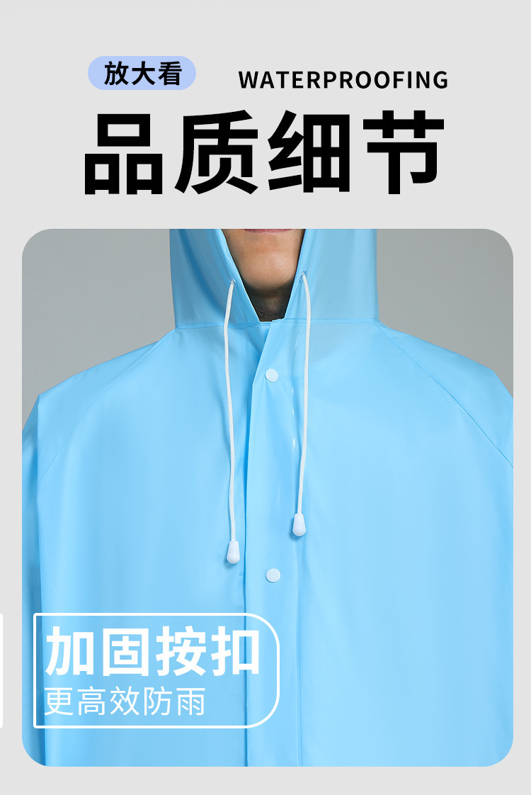 공장 도매 두꺼운 EVA 일회용 성인 원피스 비옷 남성과 여성 휴대용 야외 여행 판초 세트