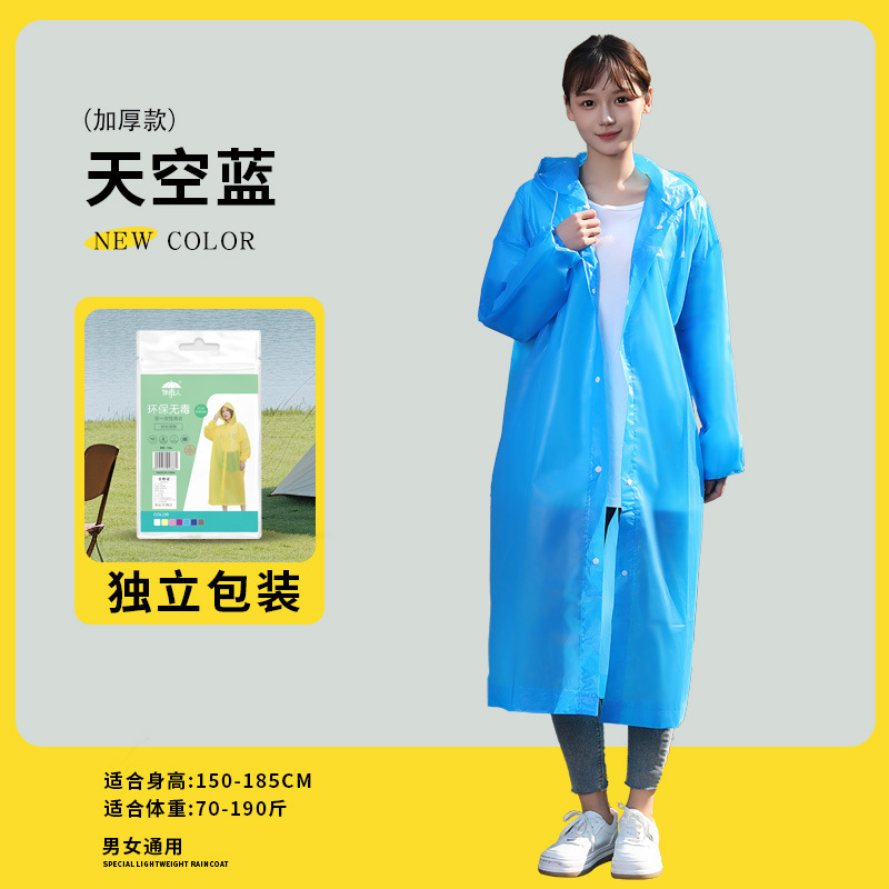 공장 도매 두꺼운 EVA 일회용 성인 원피스 비옷 남성과 여성 휴대용 야외 여행 판초 세트스토어 가기