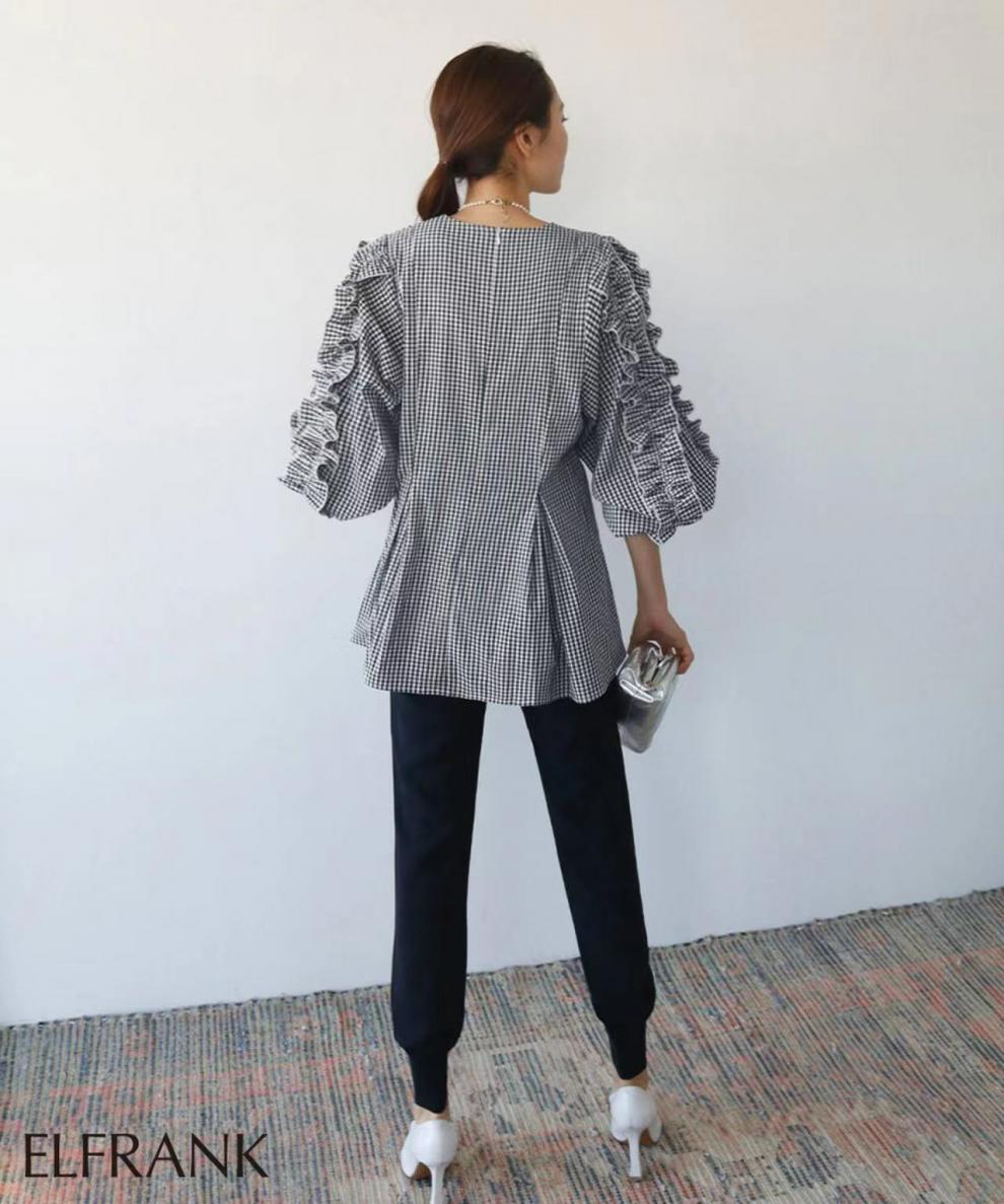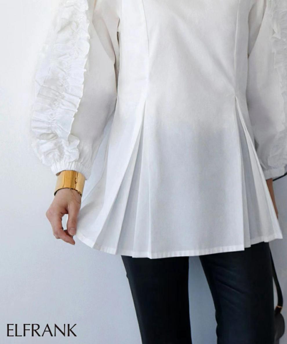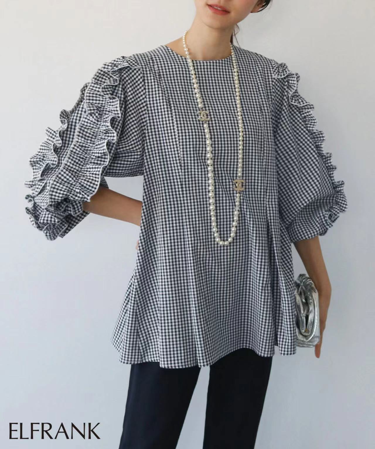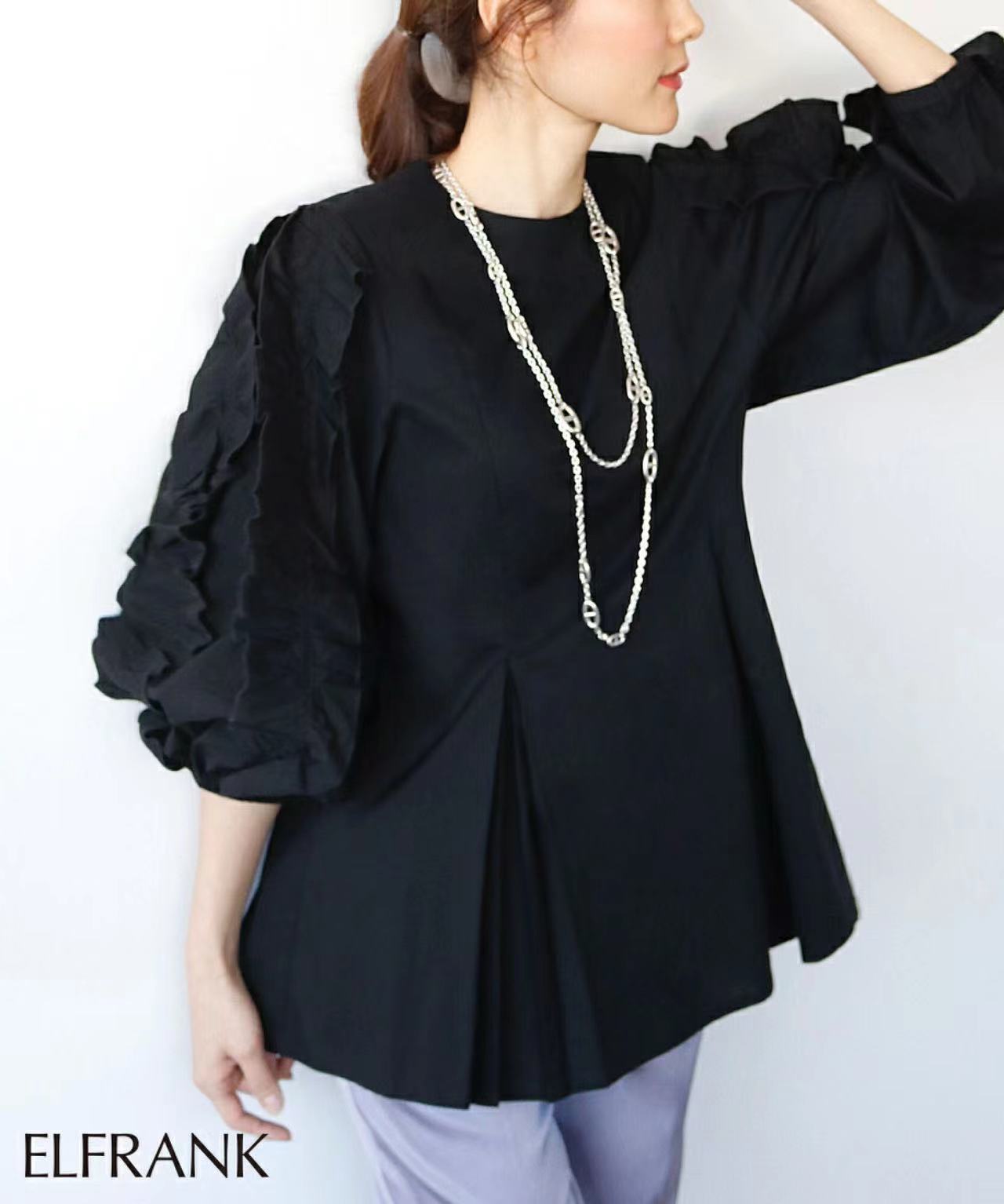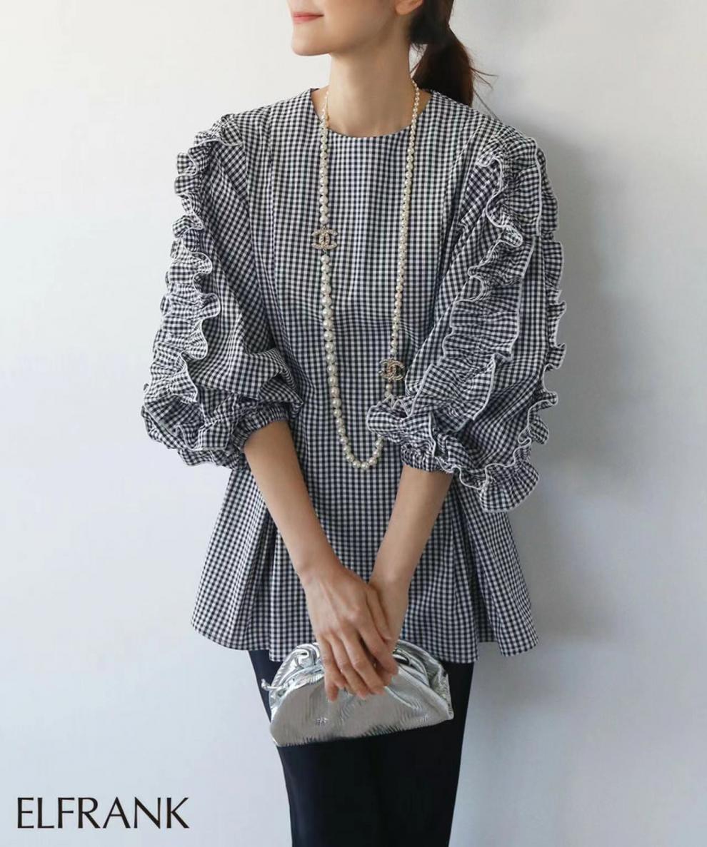 크로스 보더 라쿠텐 뜨거운 판매 일본 달콤한 느슨한 플러스 사이즈 크루넥 디자인 감각 곰팡이 사이드 긴 소매 셔츠 여성의 봄과 여름스토어 가기
