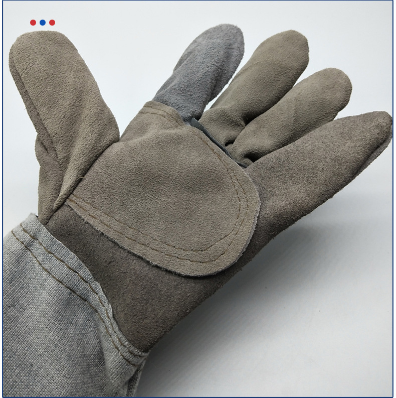 두꺼운 소 가죽 짧은 용접공 장갑 반 가죽 용접 장갑 노란색 천 짧은 반 가죽 용접기 노동 보호 장갑