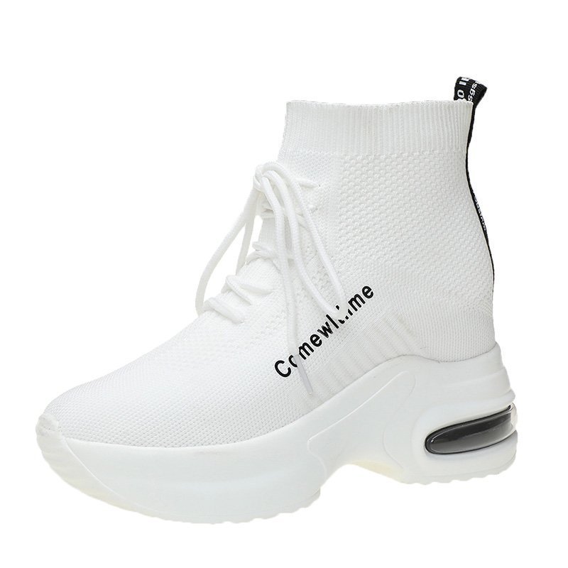 유럽 스테이션 하이탑 탄성 양말 신발 여성용 내부 높이 캐주얼 신발 스포츠 흰색 신발