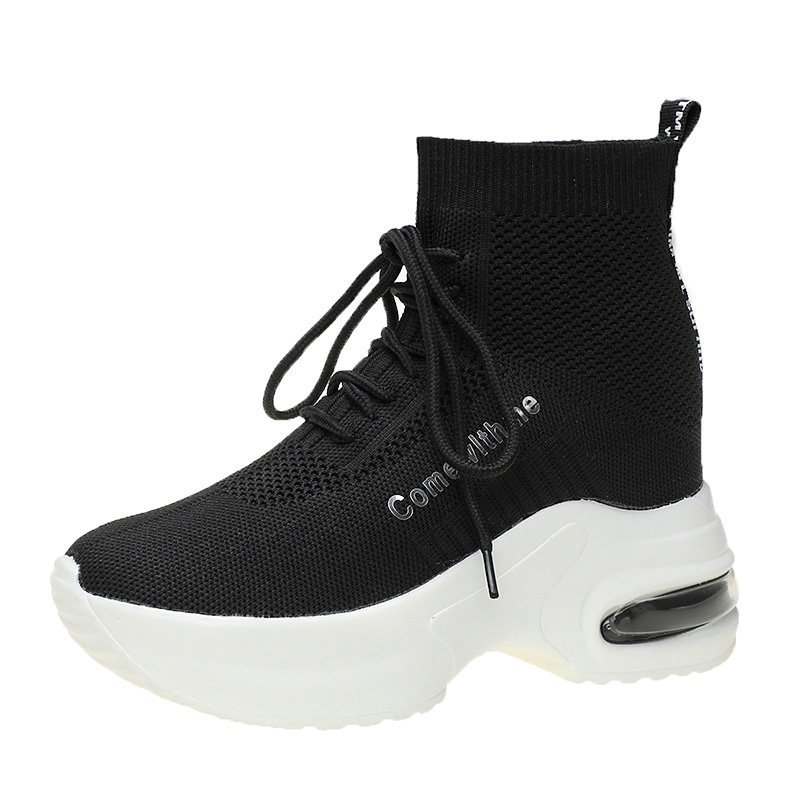 유럽 스테이션 하이탑 탄성 양말 신발 여성용 내부 높이 캐주얼 신발 스포츠 흰색 신발스토어 가기