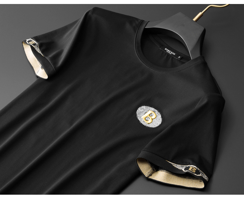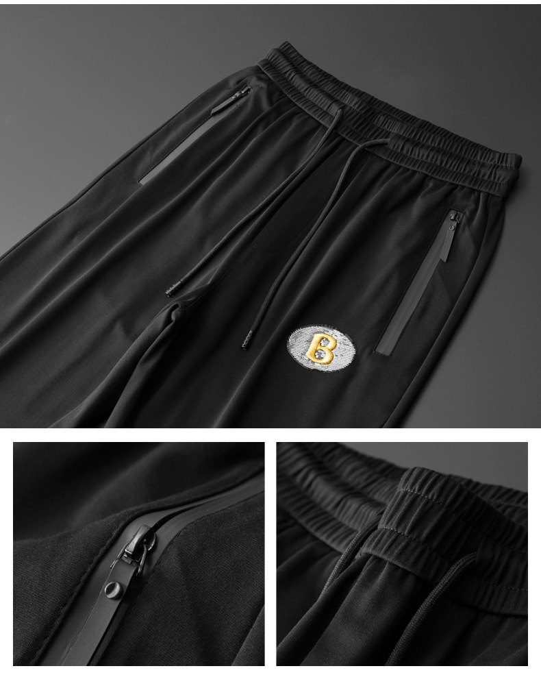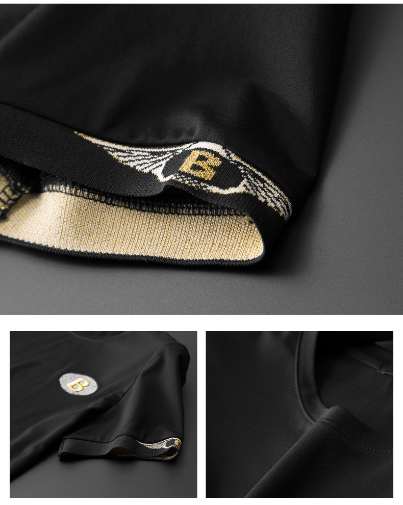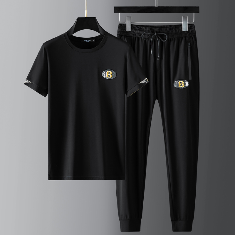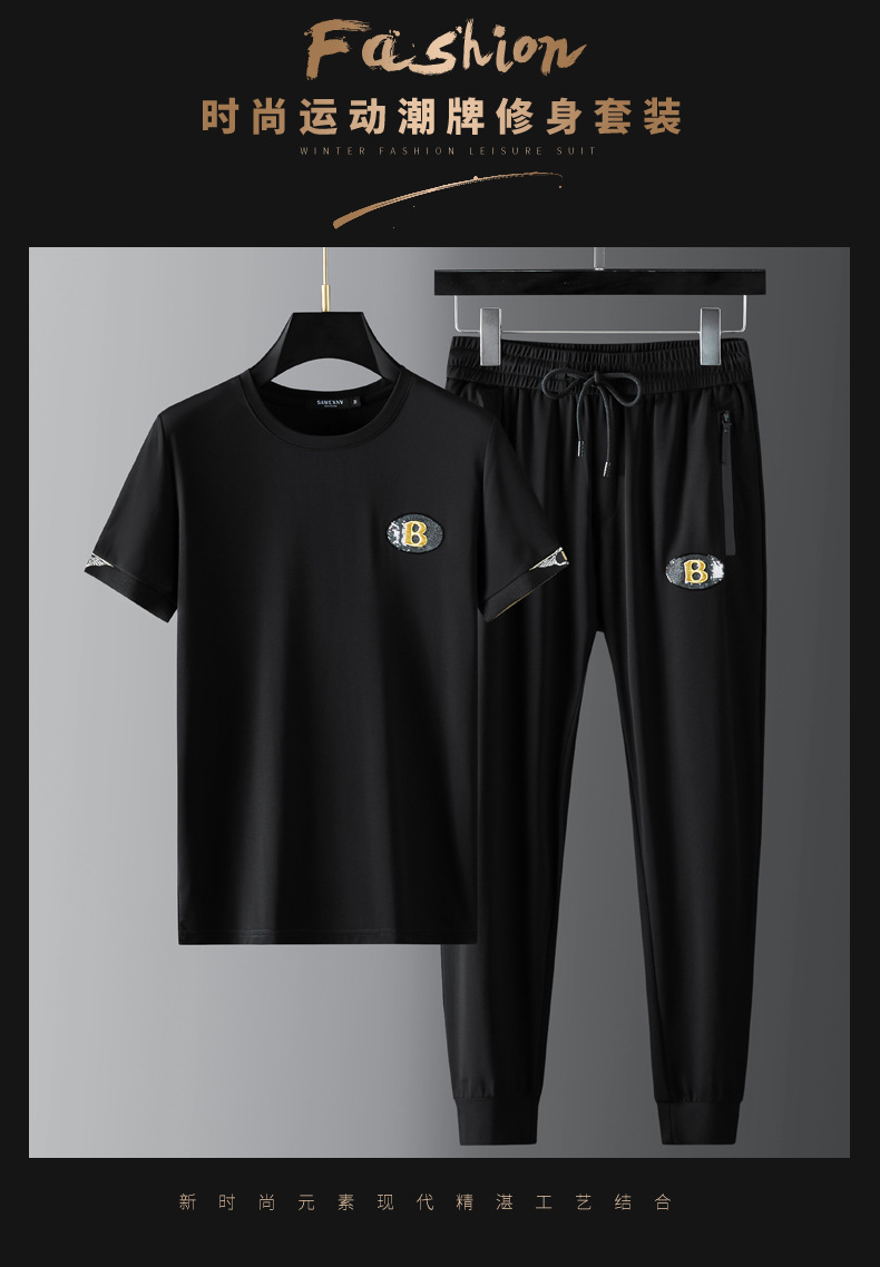 유럽 역 새로운 편지 자수 남자의 아이스 실크 옷 타이드 브랜드 실행 패션 레저 스포츠 세트 여름