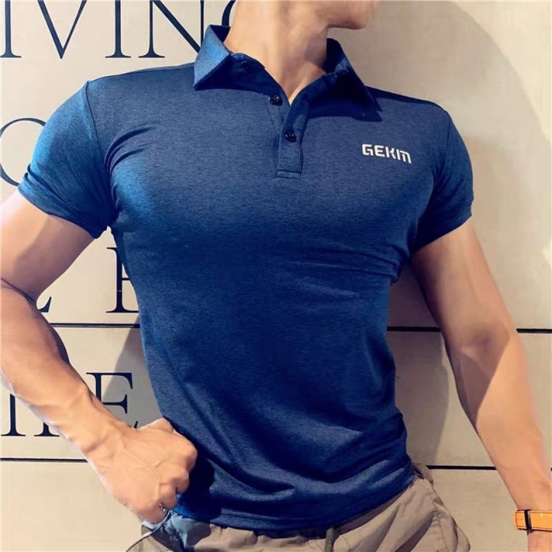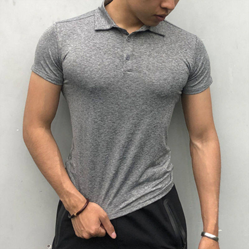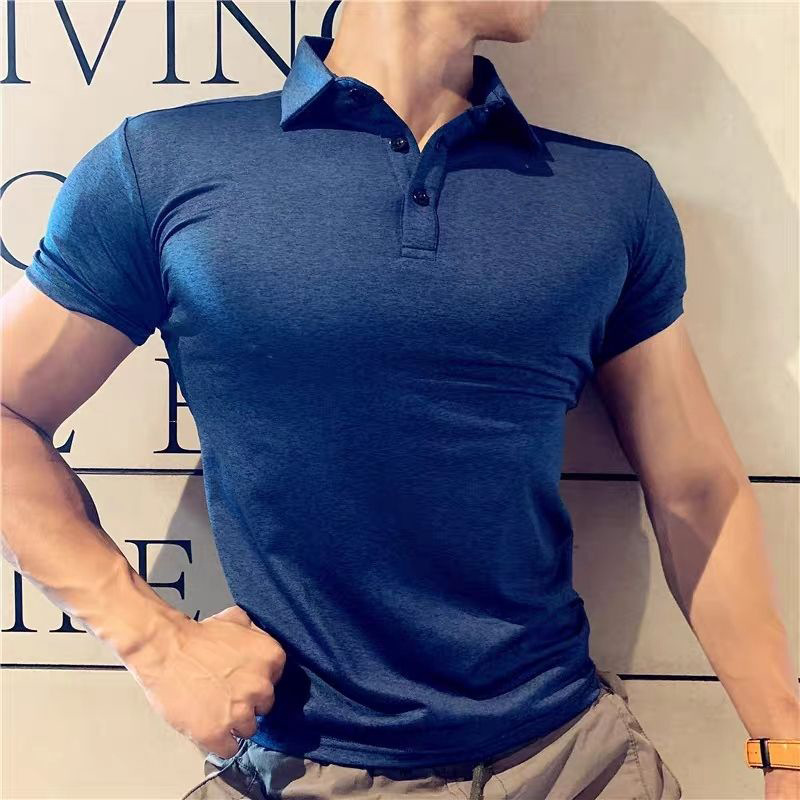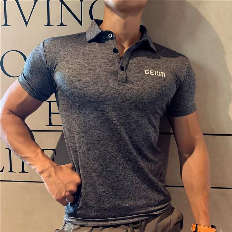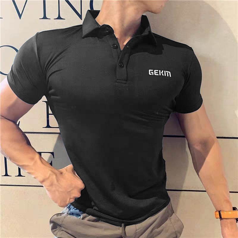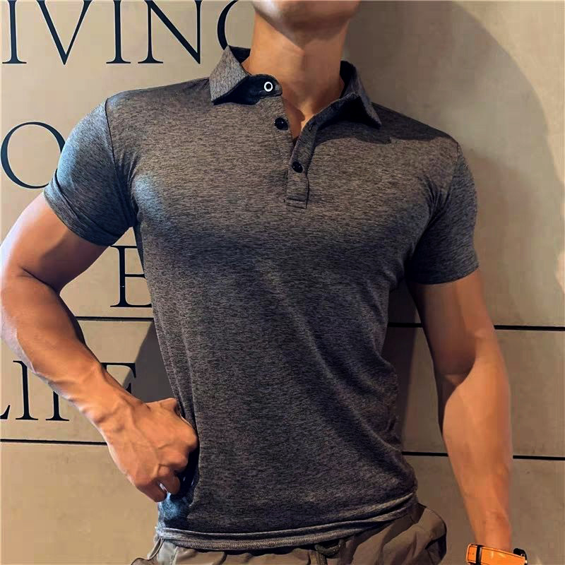 여름 옷깃 폴로 셔츠 반팔 남성 체육관 훈련복 속건 스트레치 타이트 티셔츠 바지스토어 가기