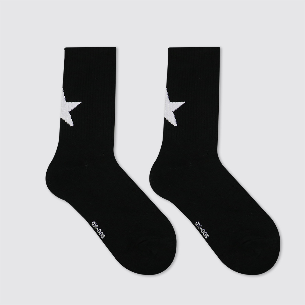 트렌디 한 브랜드 오리지널 디자인 흑백 5 각 별 양말 심플한 개성 거리 스포츠 양말 면 남성과 여성 커플